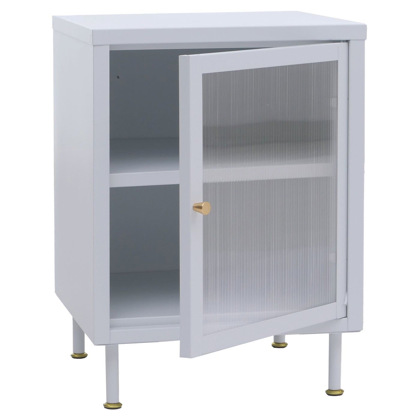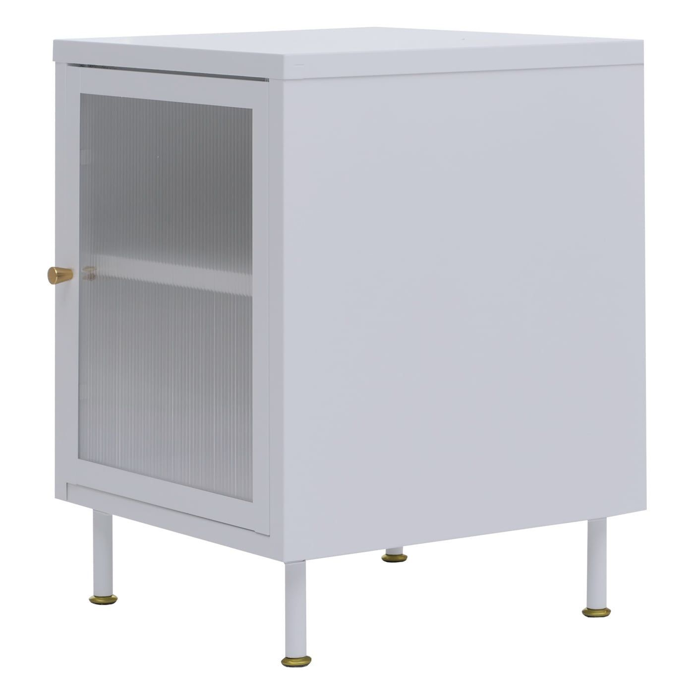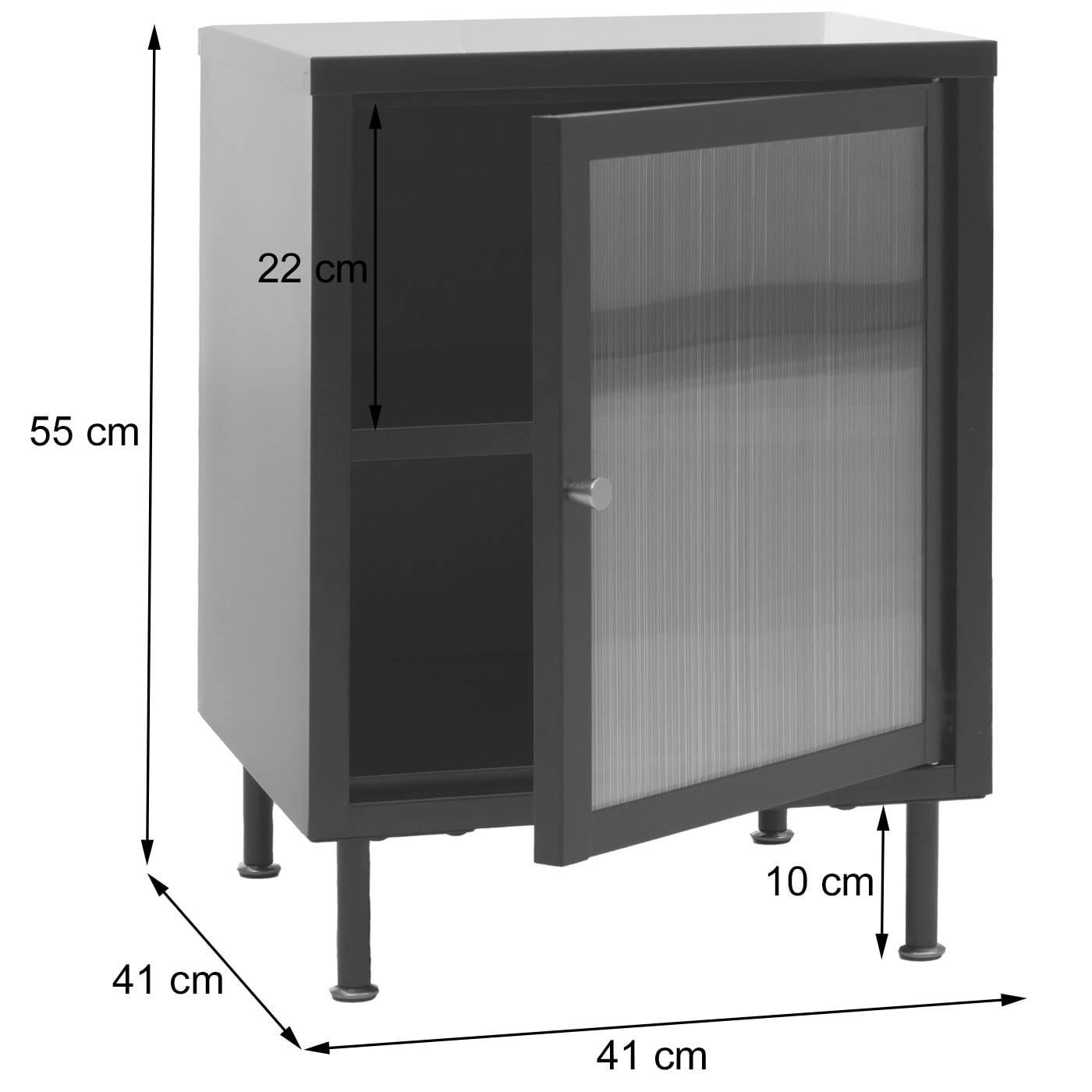 Mendler Nachttisch HWC-O87, Nachtschrank, Industrial Staufächer Metall Schilfglas 55x41x41cm
