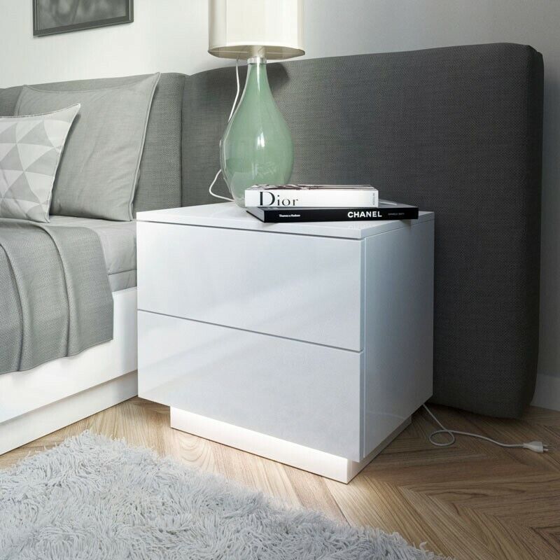 Nachttisch LED Nachtkommode Hochglanz galt Beleuchtung Kommode weiß