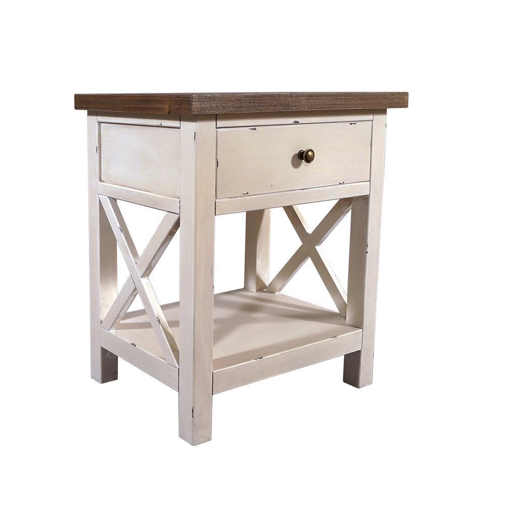 Nachttisch Loire 1 Schublade Holz Landhaus Stil Vintage Look Tisch creme NEU