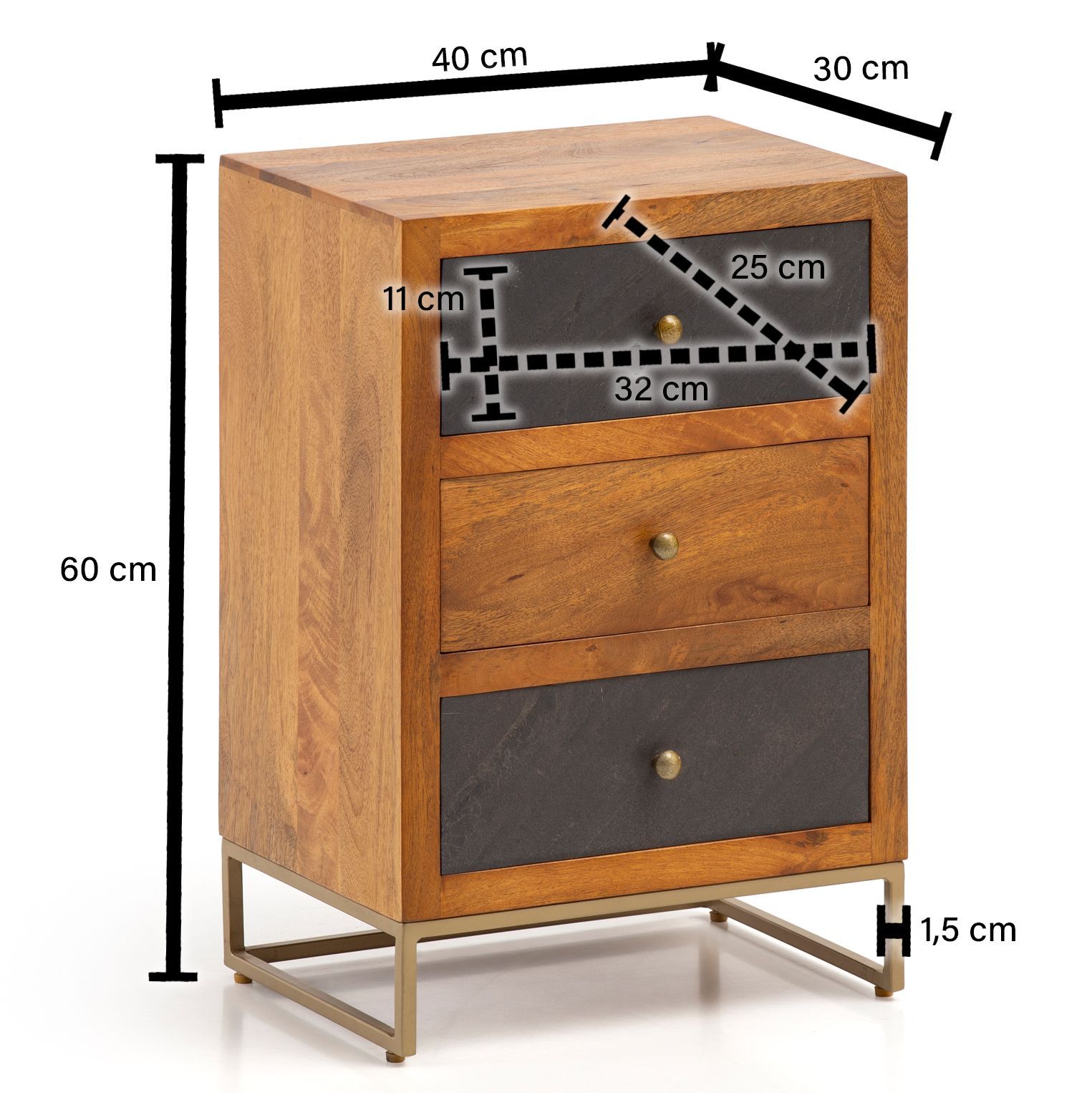 Nachttisch Massivholz 3 Steinoptik Schubladen Design Nachtkonsole Nachtschrank
