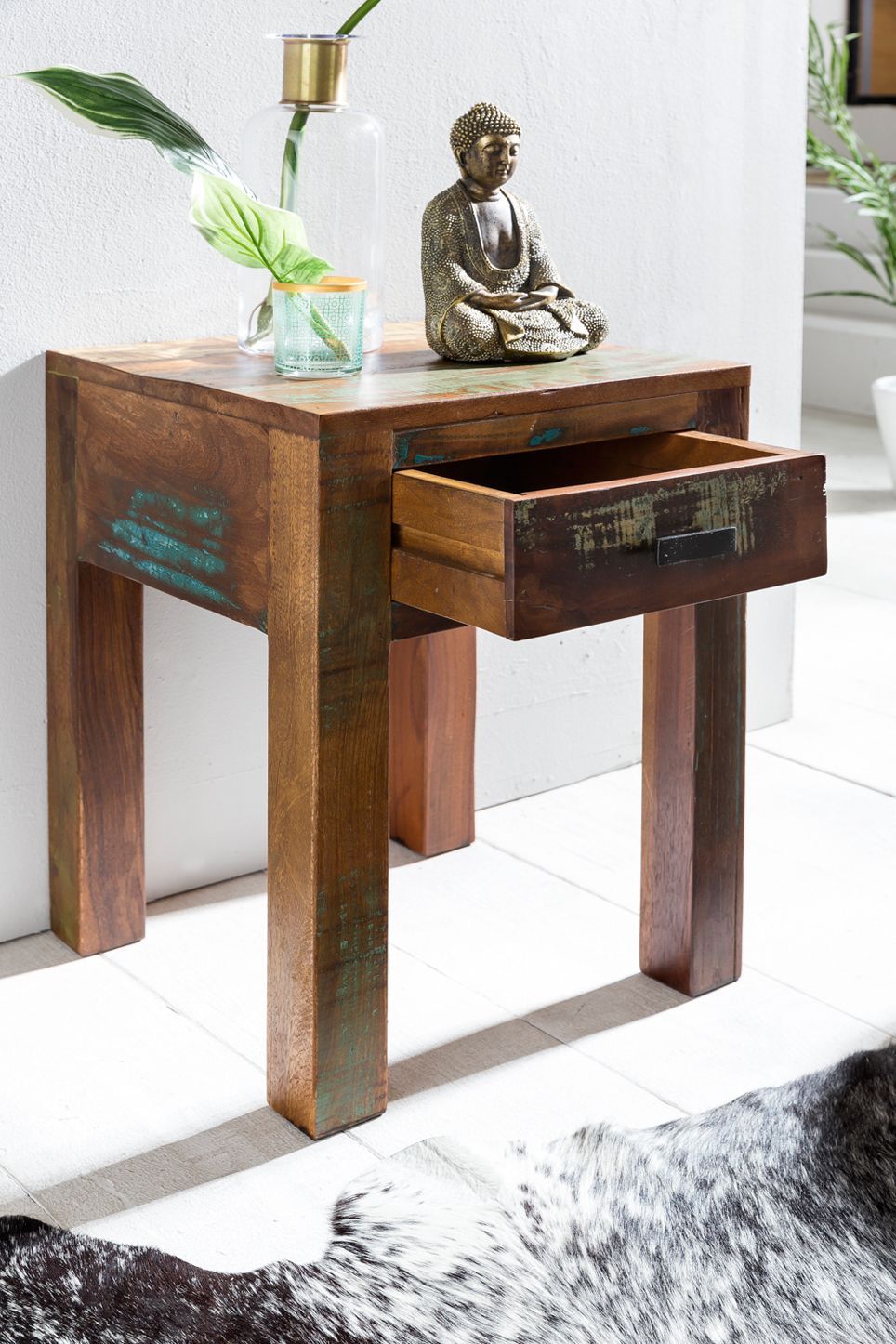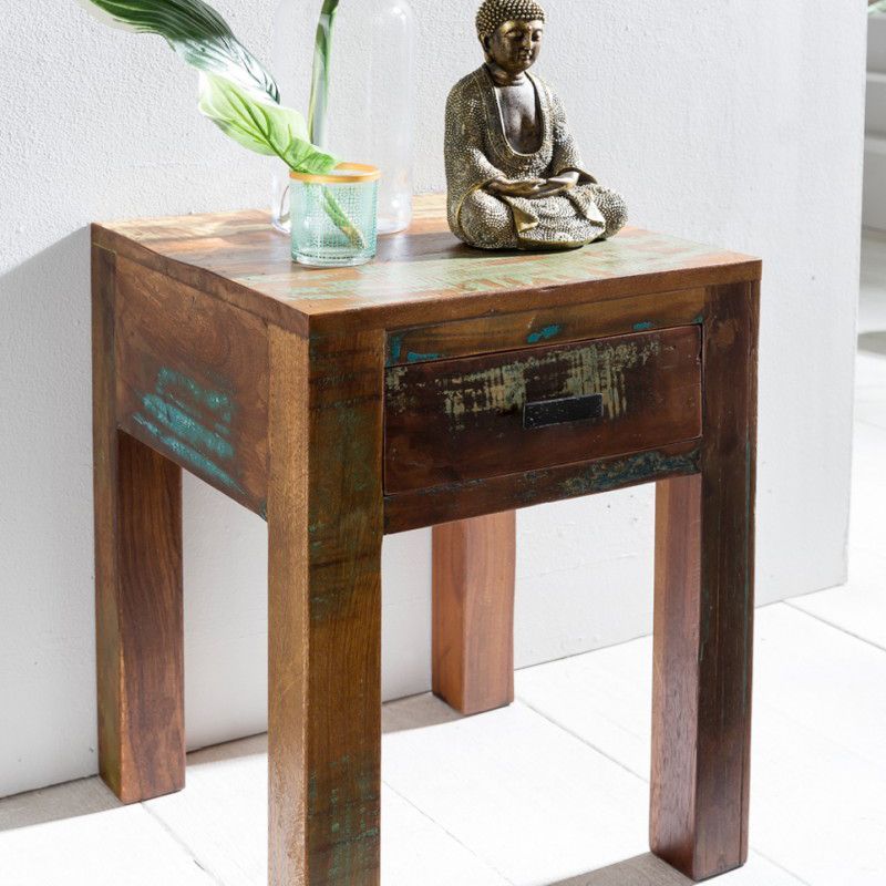 FineBuy Nachttisch Massivholz Shabby Chic Schublade kleiner Beistelltisch Nachtkonsole