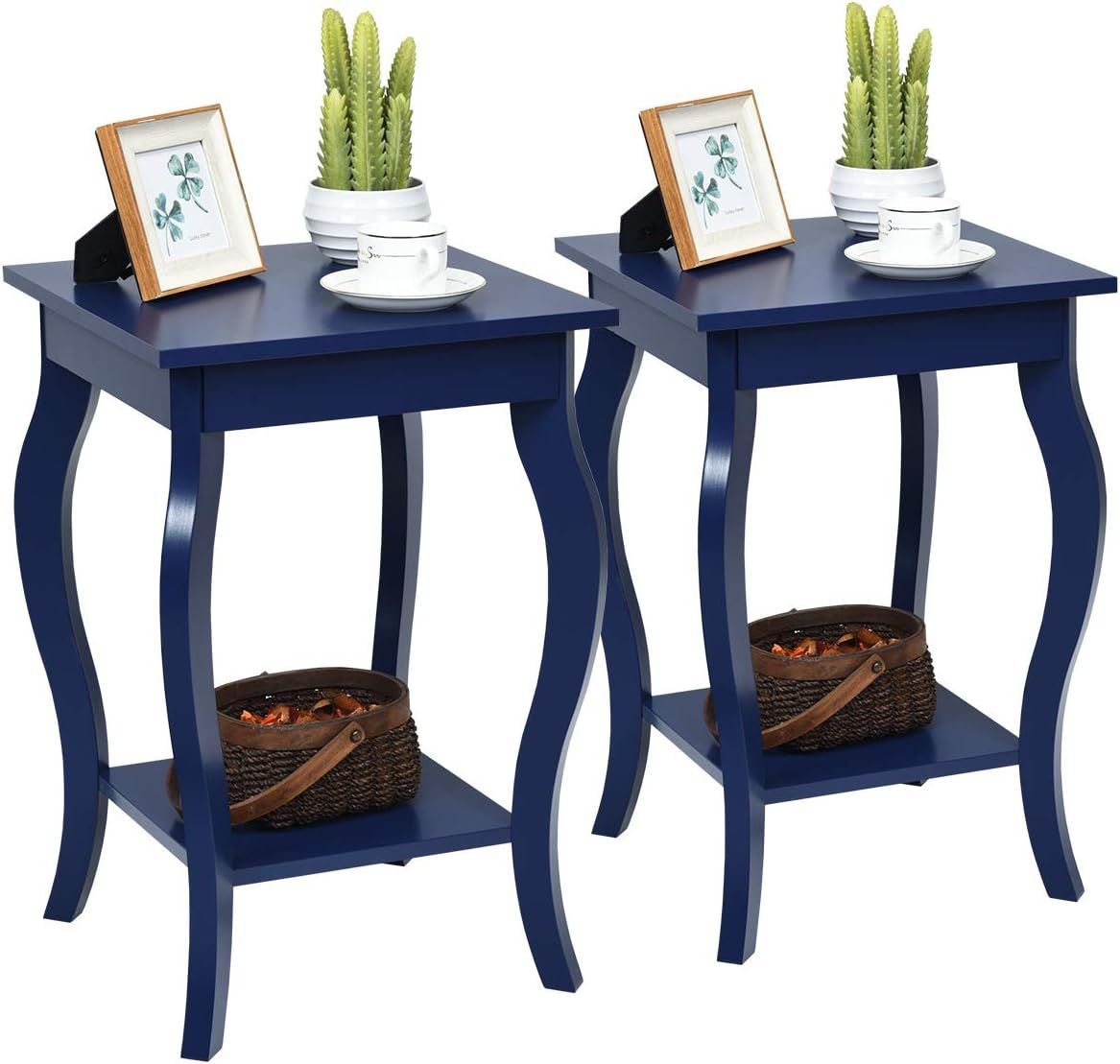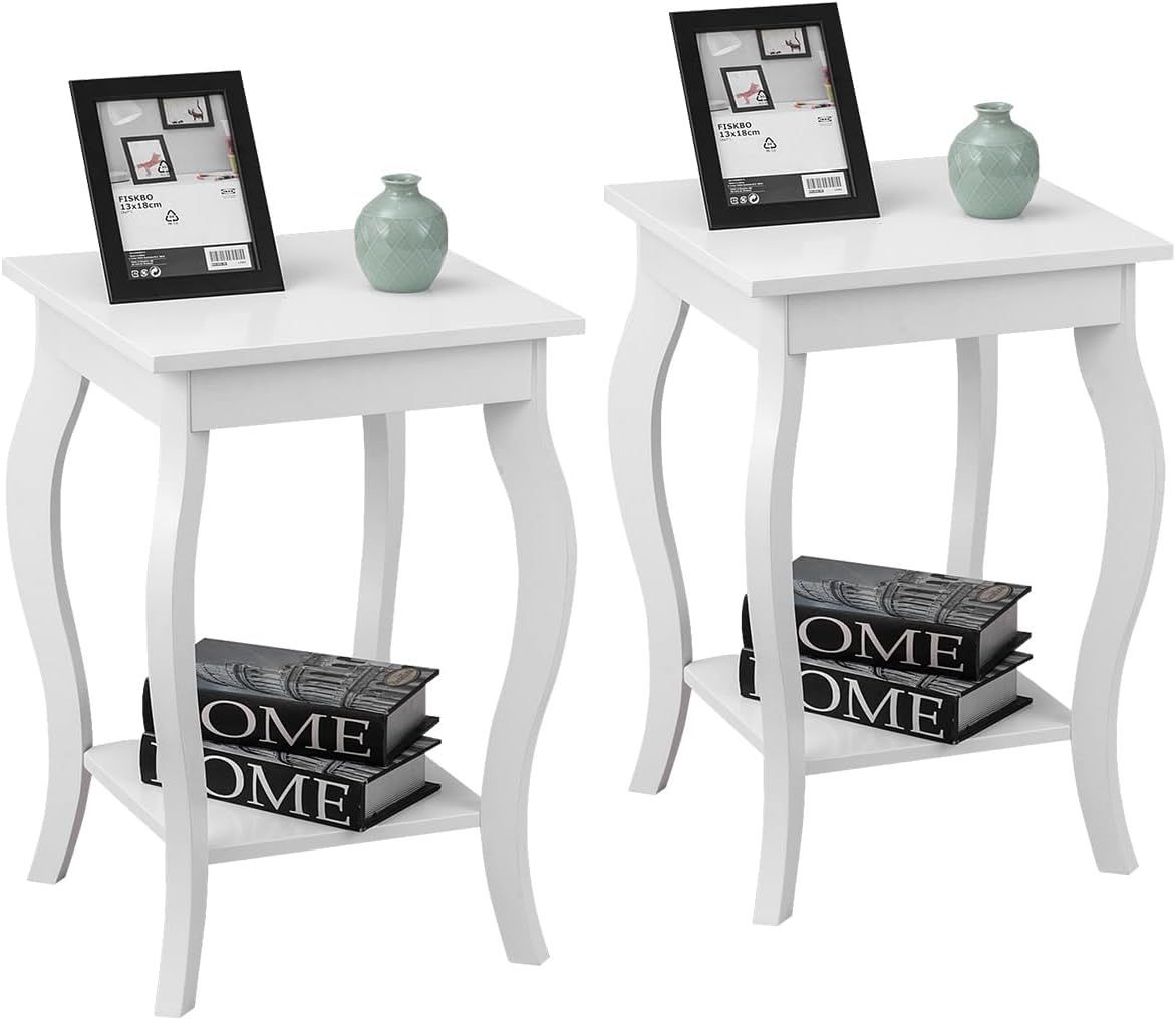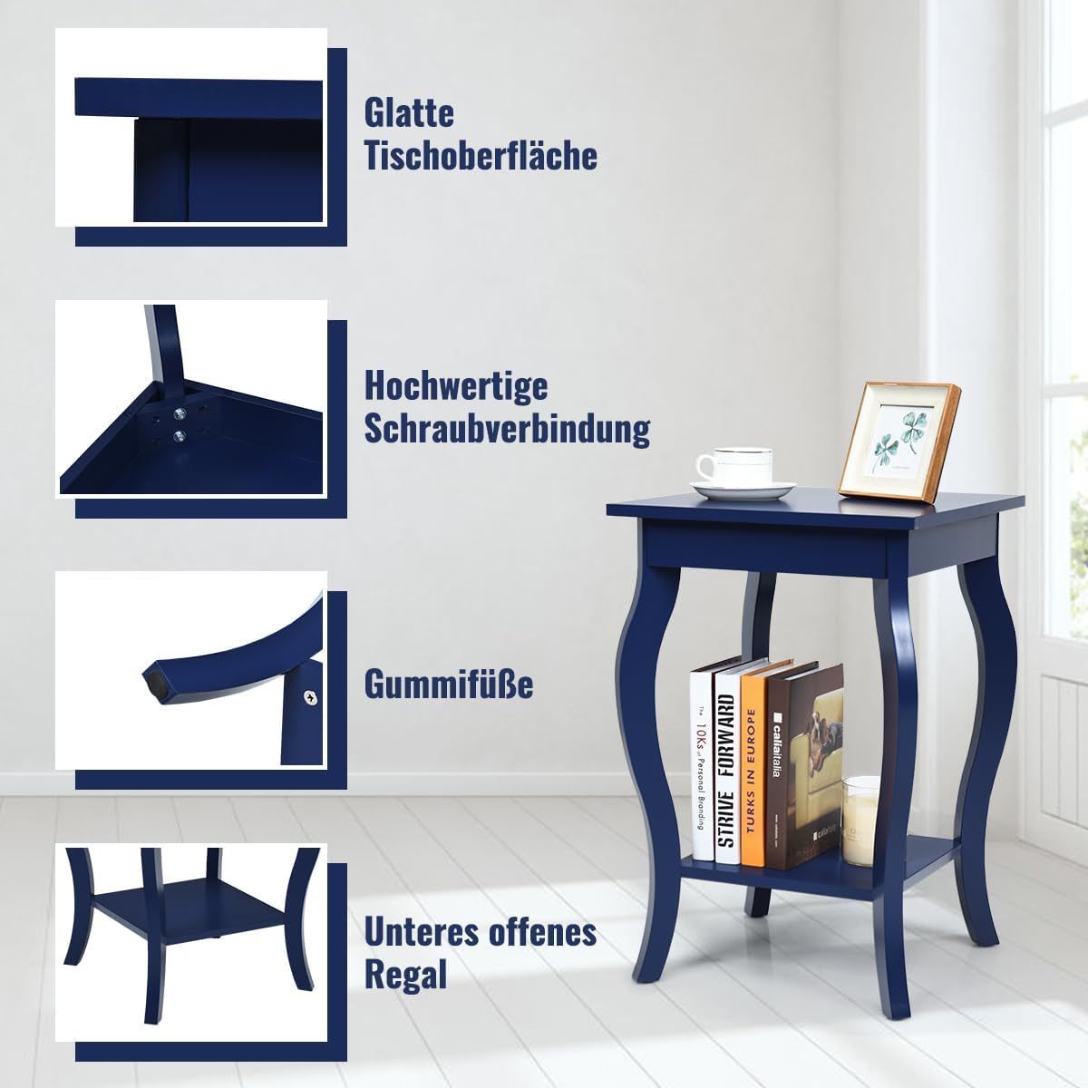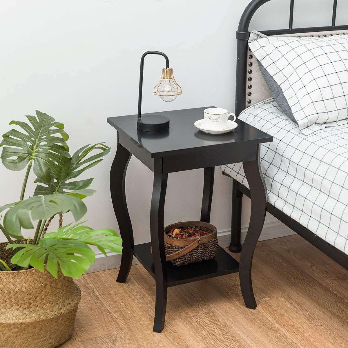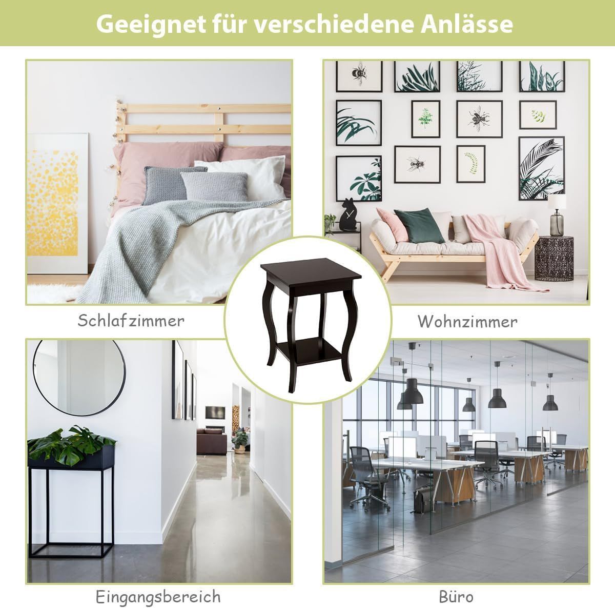 Nachttisch mit Ablage, 2 Ebene Beistelltisch aus Holz, Nachtkonsole, Sofatisch