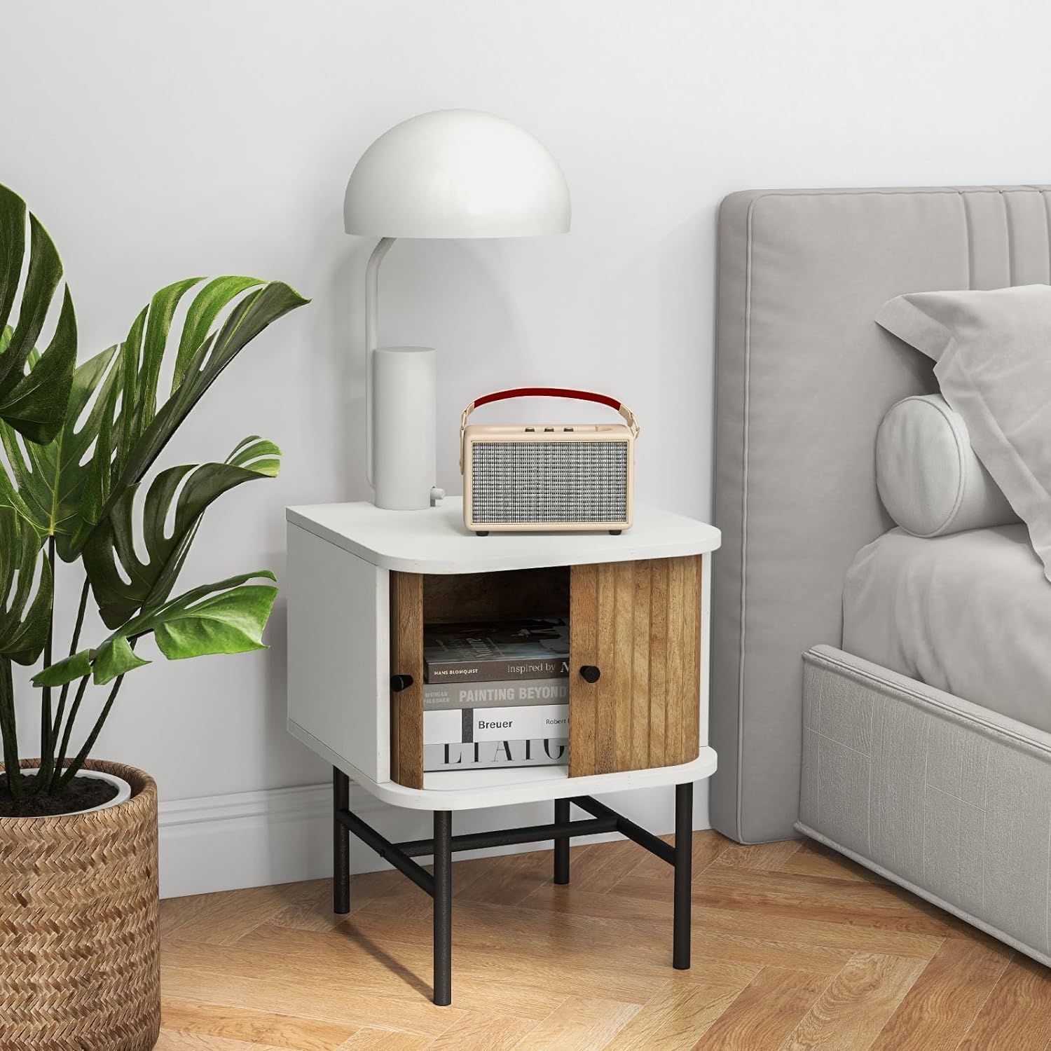 Nachttisch mit Schiebet¨¹ren, Nachtschrank mit Stauraum, Beistelltisch mit Metallbein