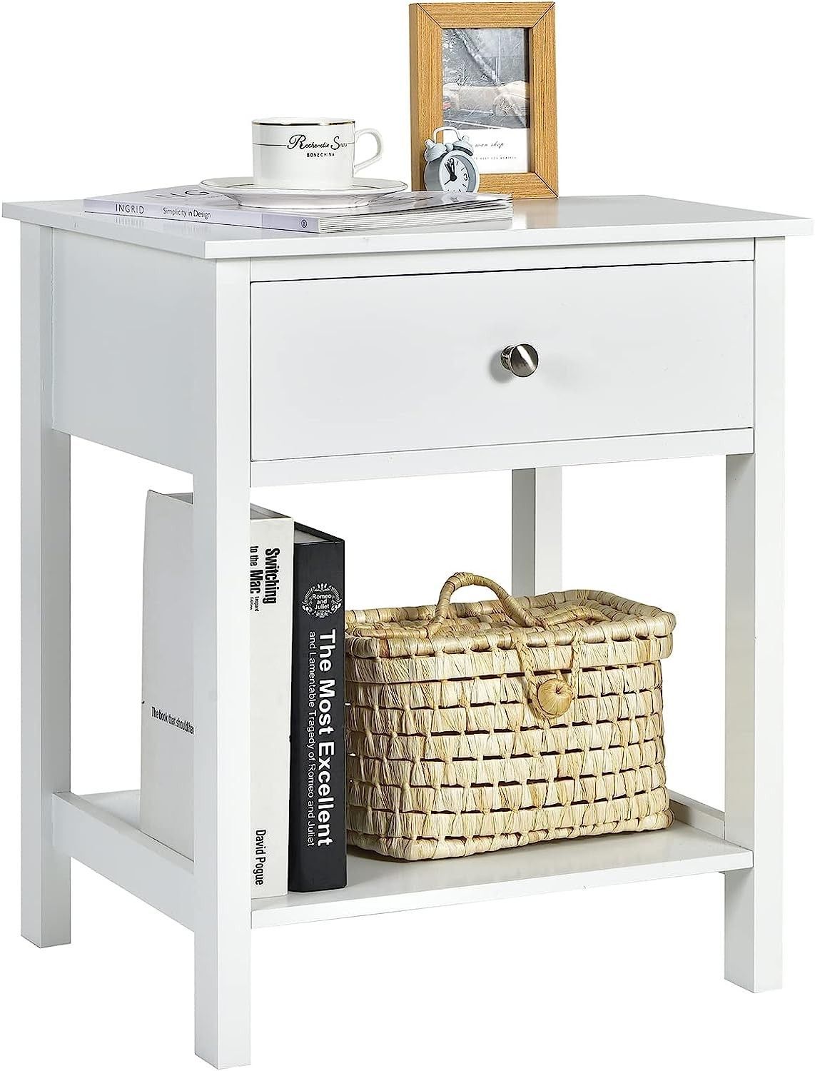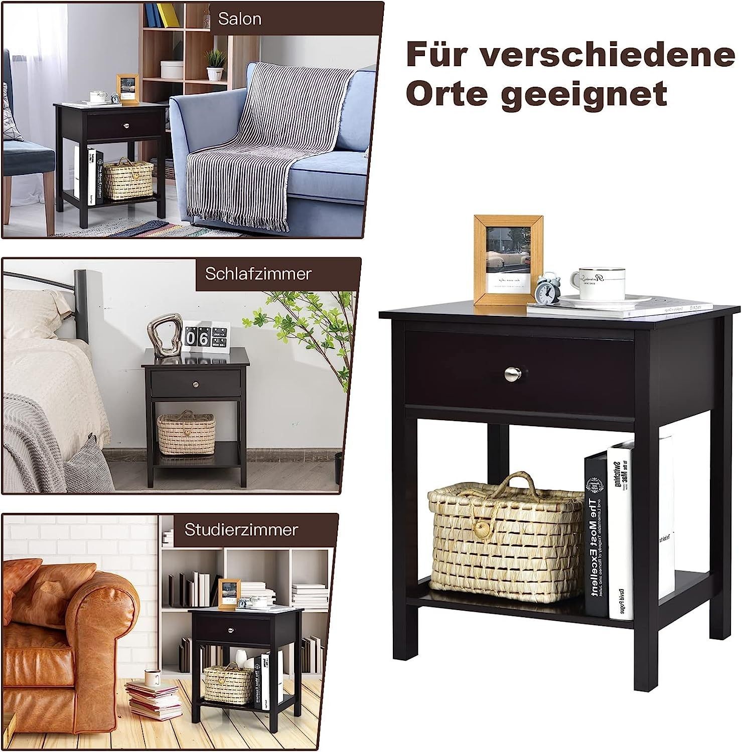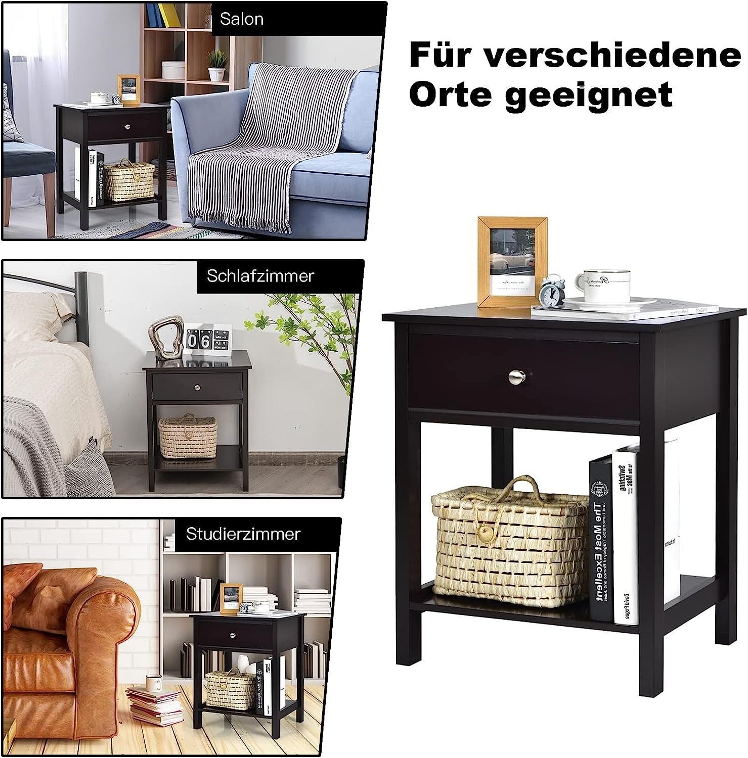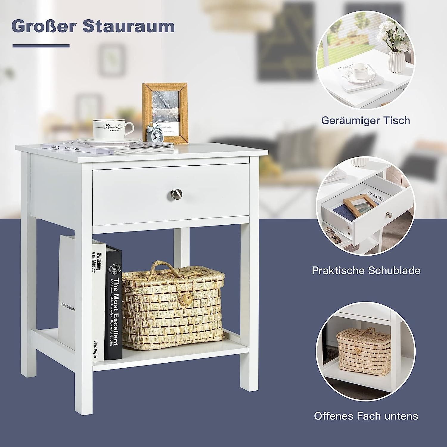Nachttisch mit Schublade und Ablage, Nachtkommode Nachtschrank Nachtkonsole Flurtisch