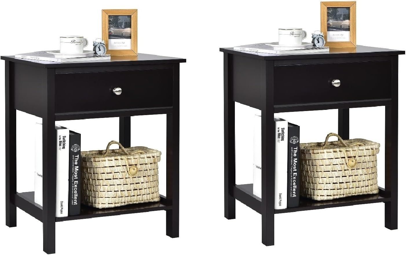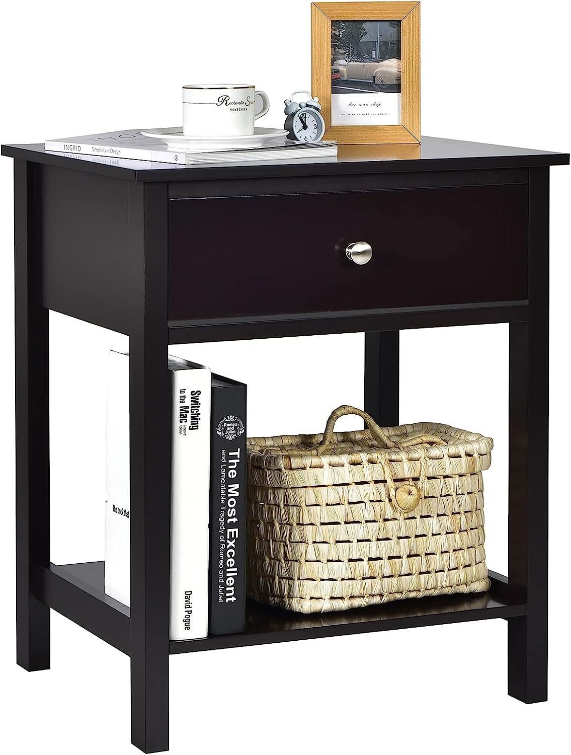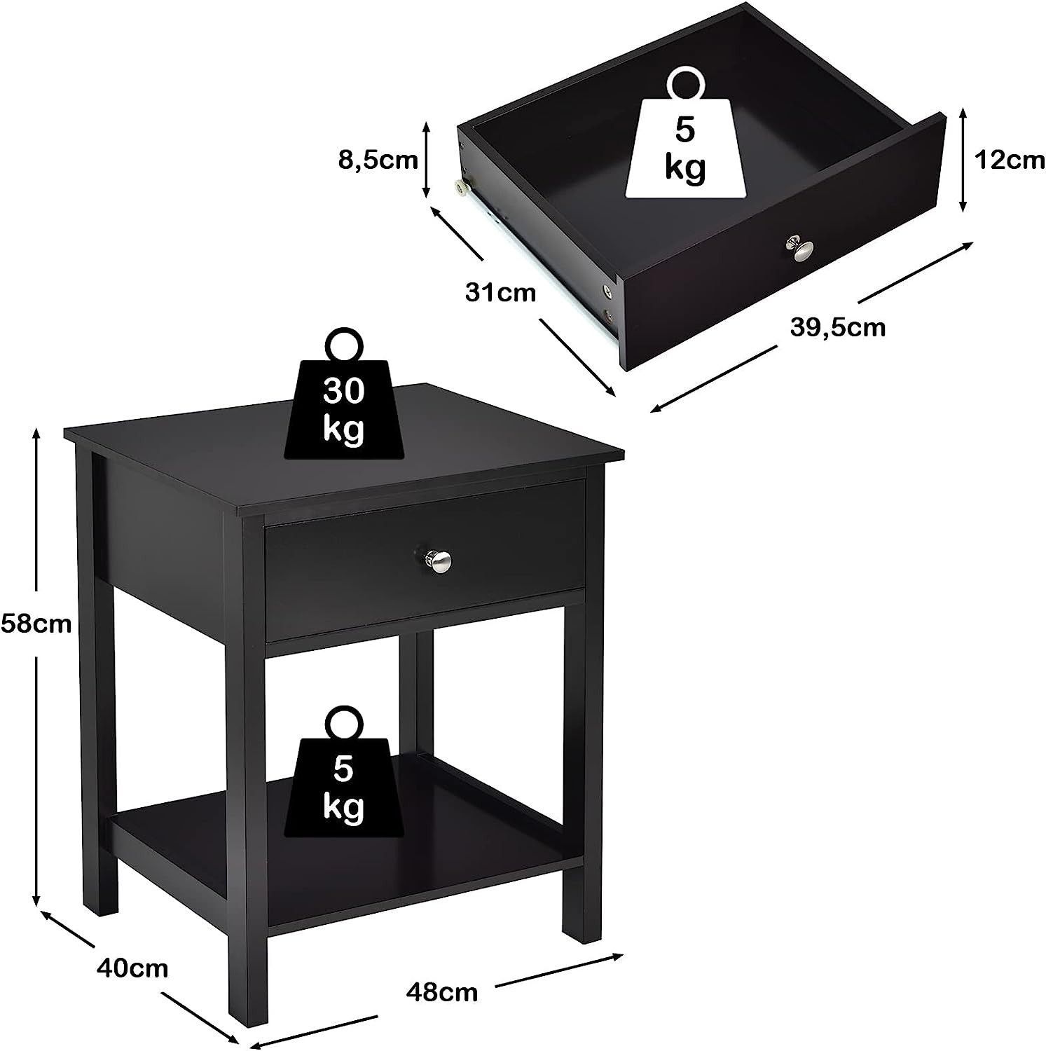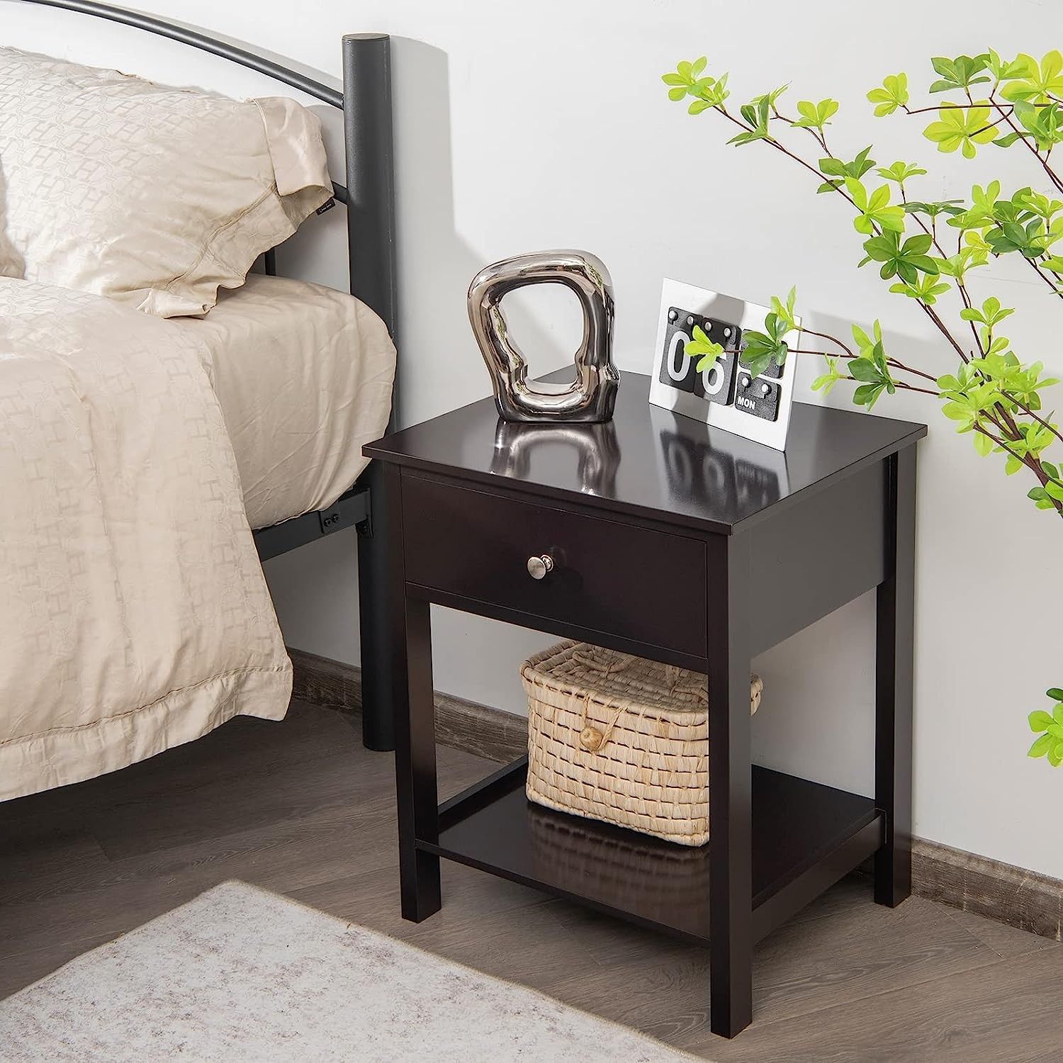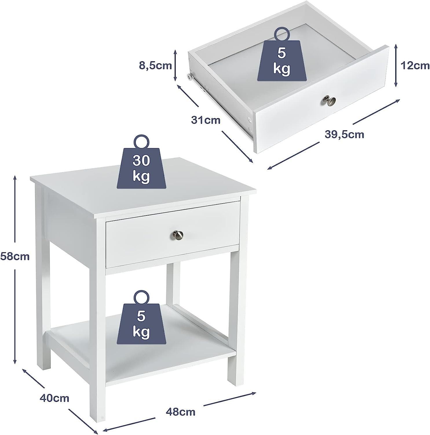 Nachttisch mit Schublade und Ablage, Nachtkommode Nachtschrank Nachtkonsole Flurtisch