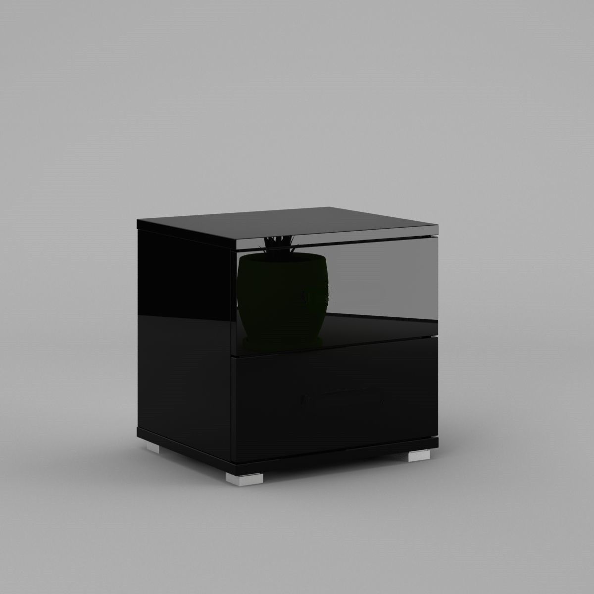 Nachttisch N2 mit Schubladen ganz in Hochglanzschwarz push to open
