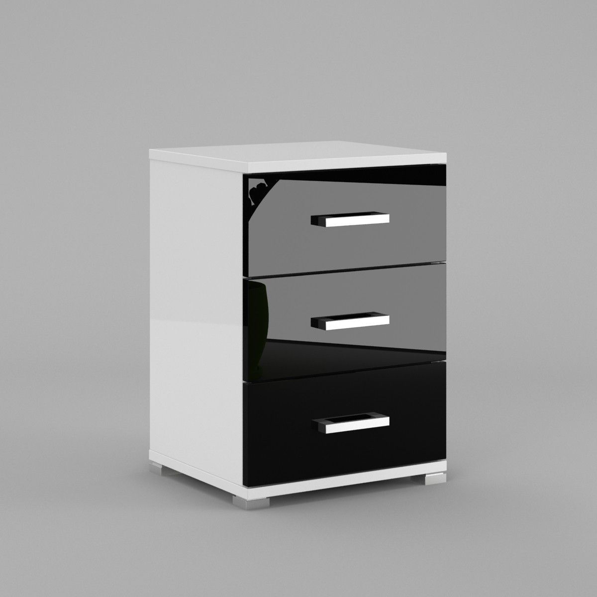 Nachttisch N3 mit drei Schubladen ganz in Weiß Schwarz Hochglanz