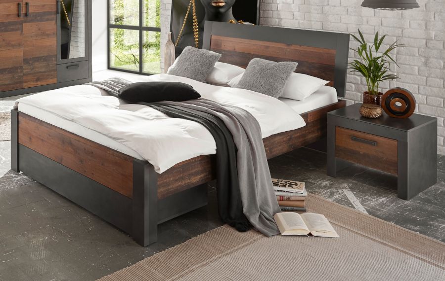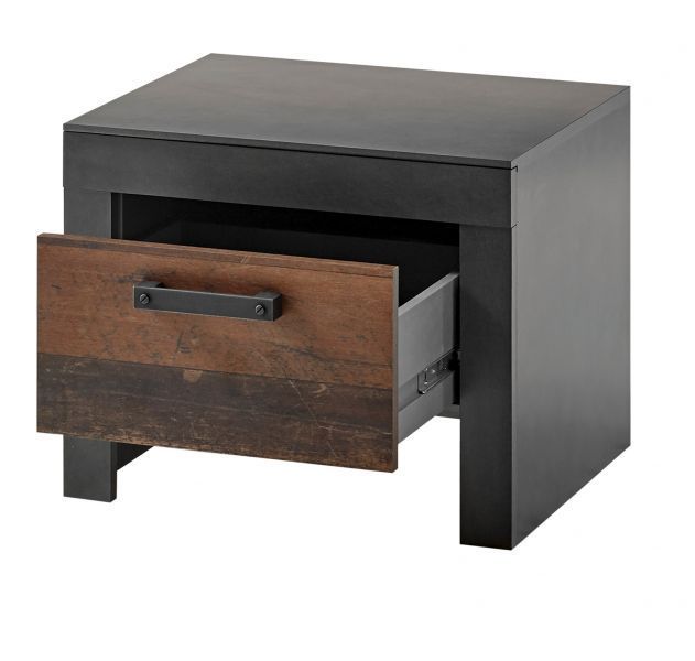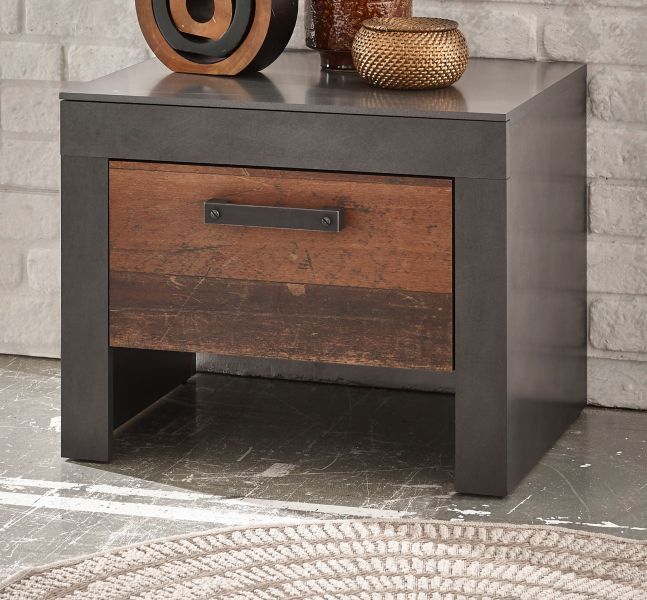 Nachttisch Nachtschrank in Used Wood und grau Nachtkonsole mit Schublade Ward