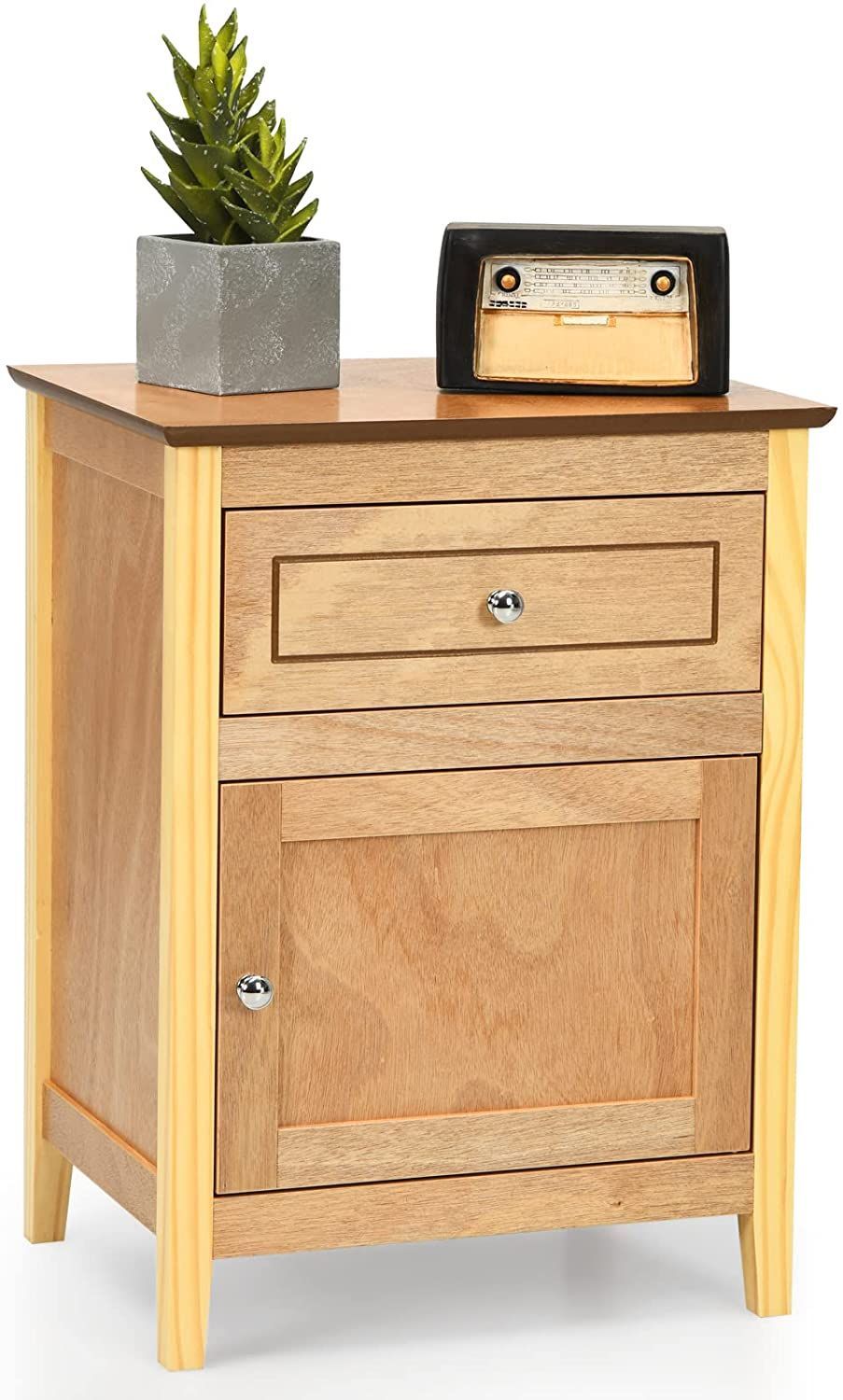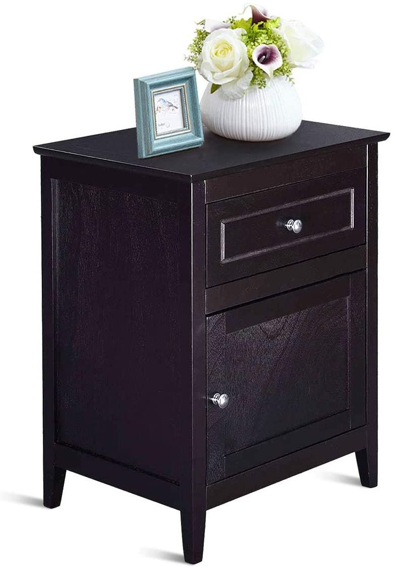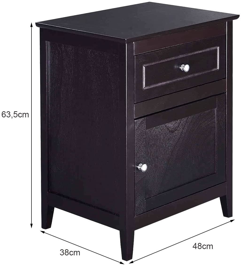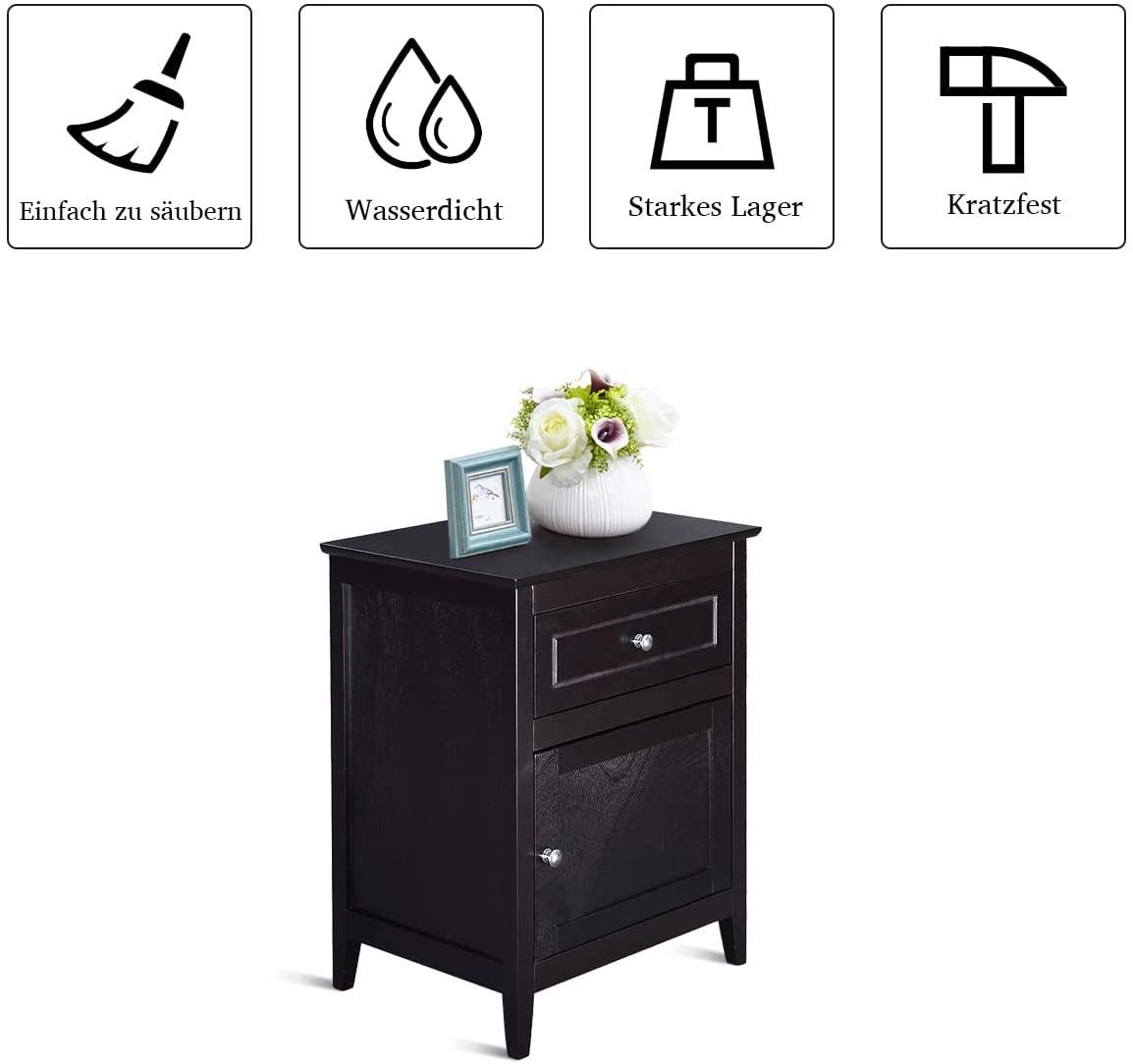 Nachttisch Nachtschrank mit Schiebeschublade & Tür, 2-stufiger Akzenttisch Sofatisch