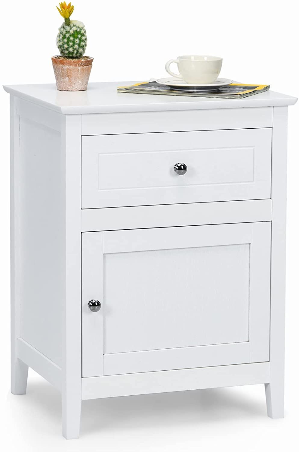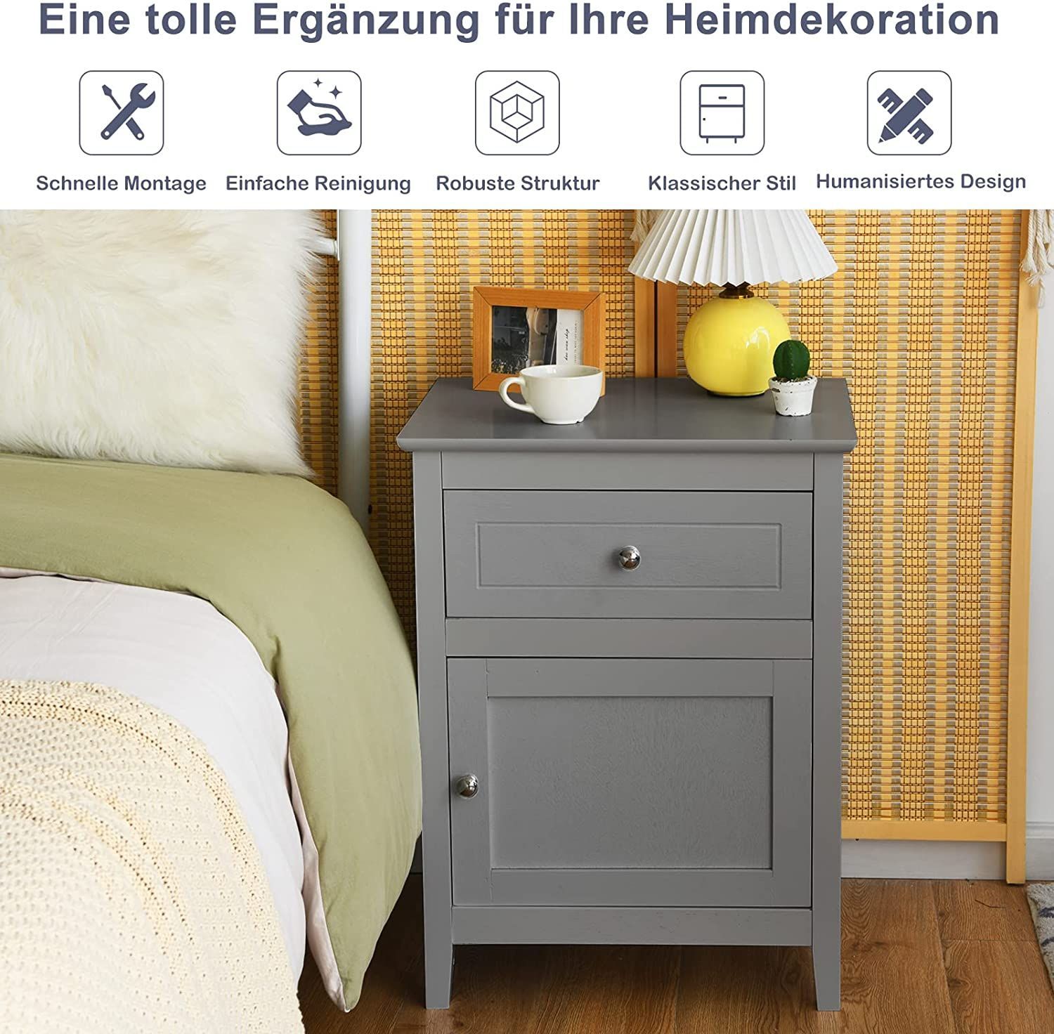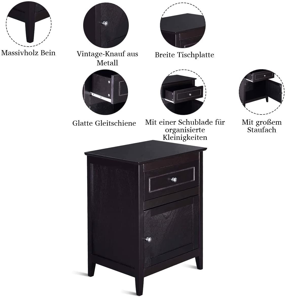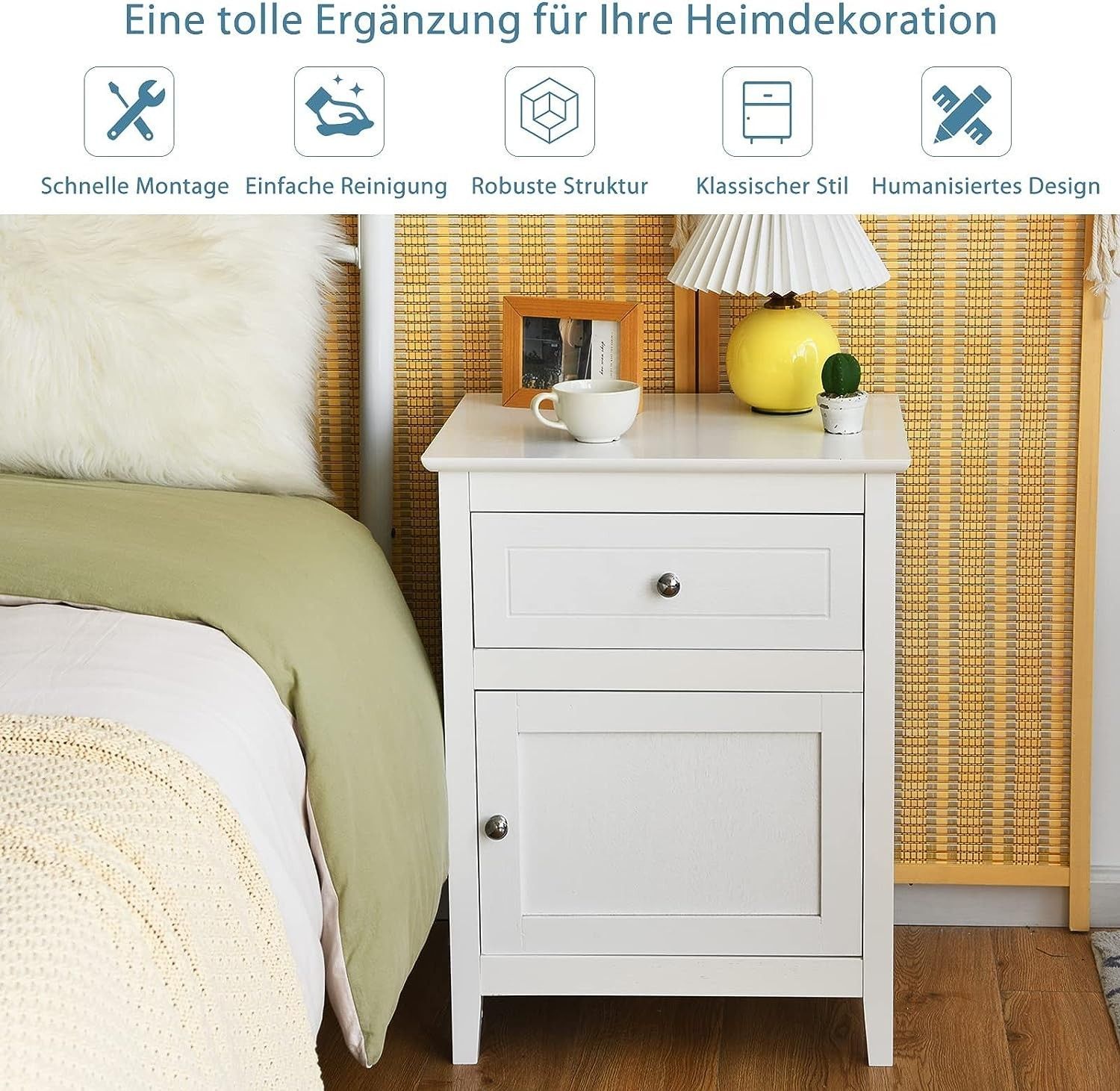Nachttisch Nachtschrank mit Schiebeschublade & Tür, 2-stufiger Akzenttisch Sofatisch