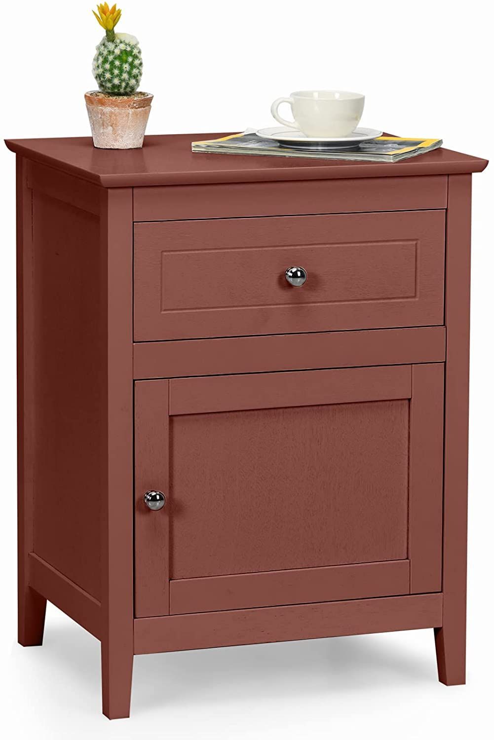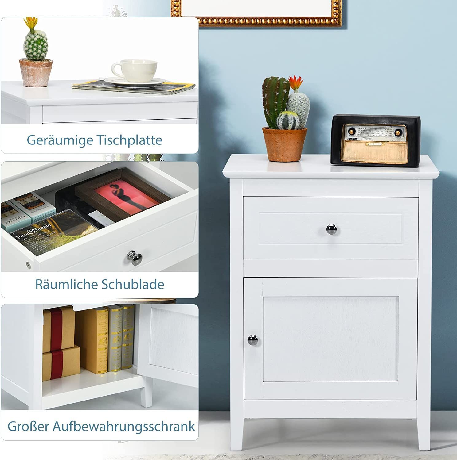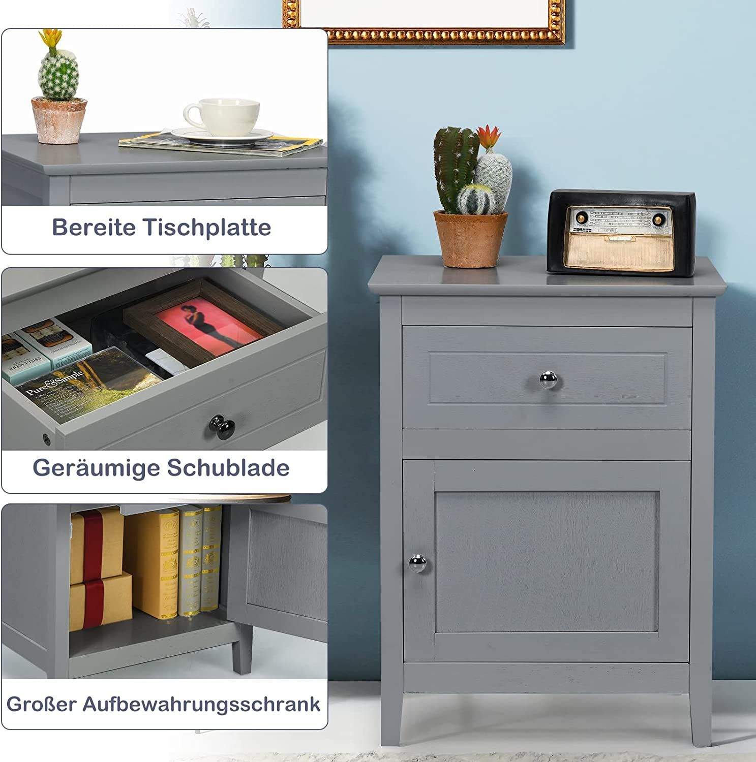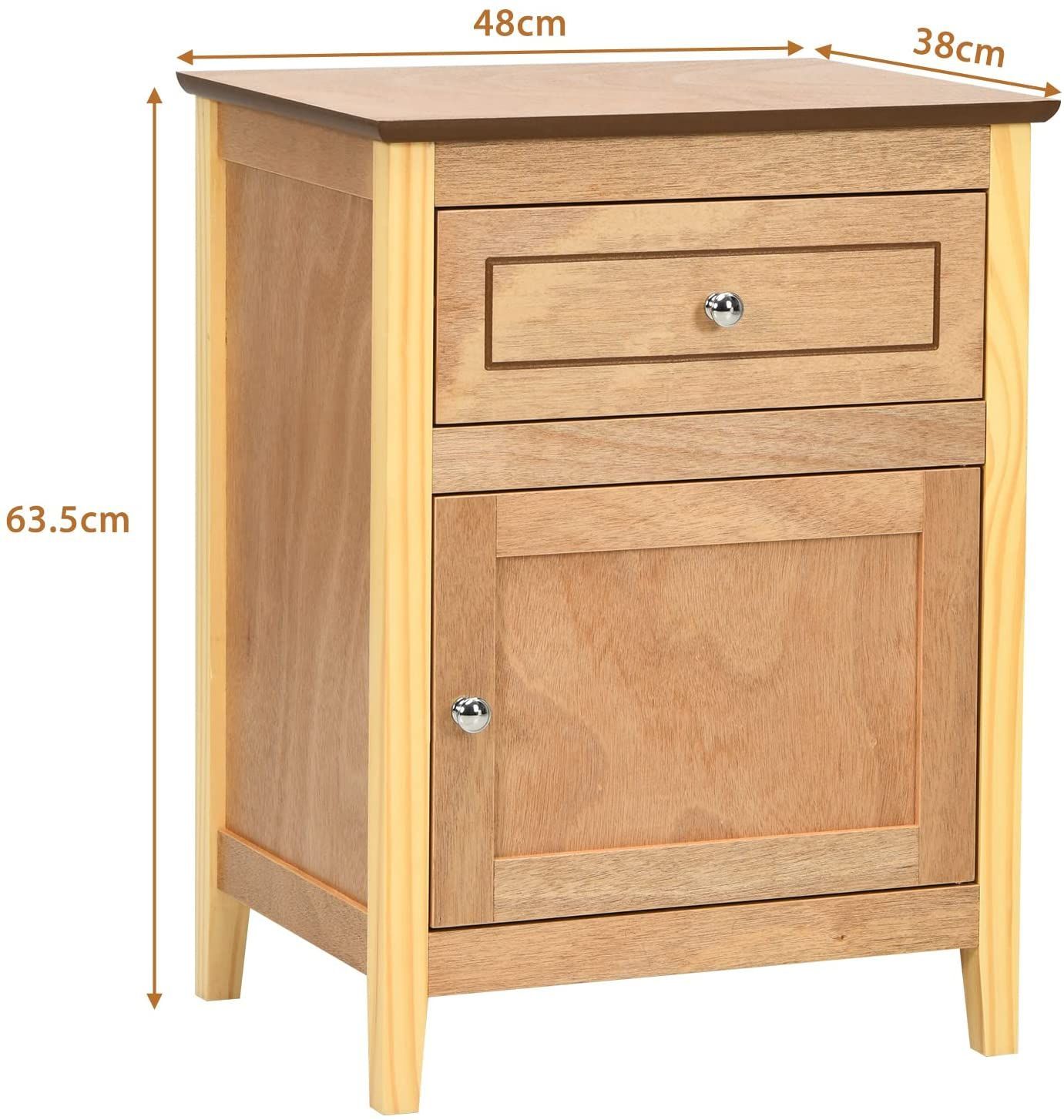 Nachttisch Nachtschrank mit Schiebeschublade & Tür, 2-stufiger Akzenttisch Sofatisch