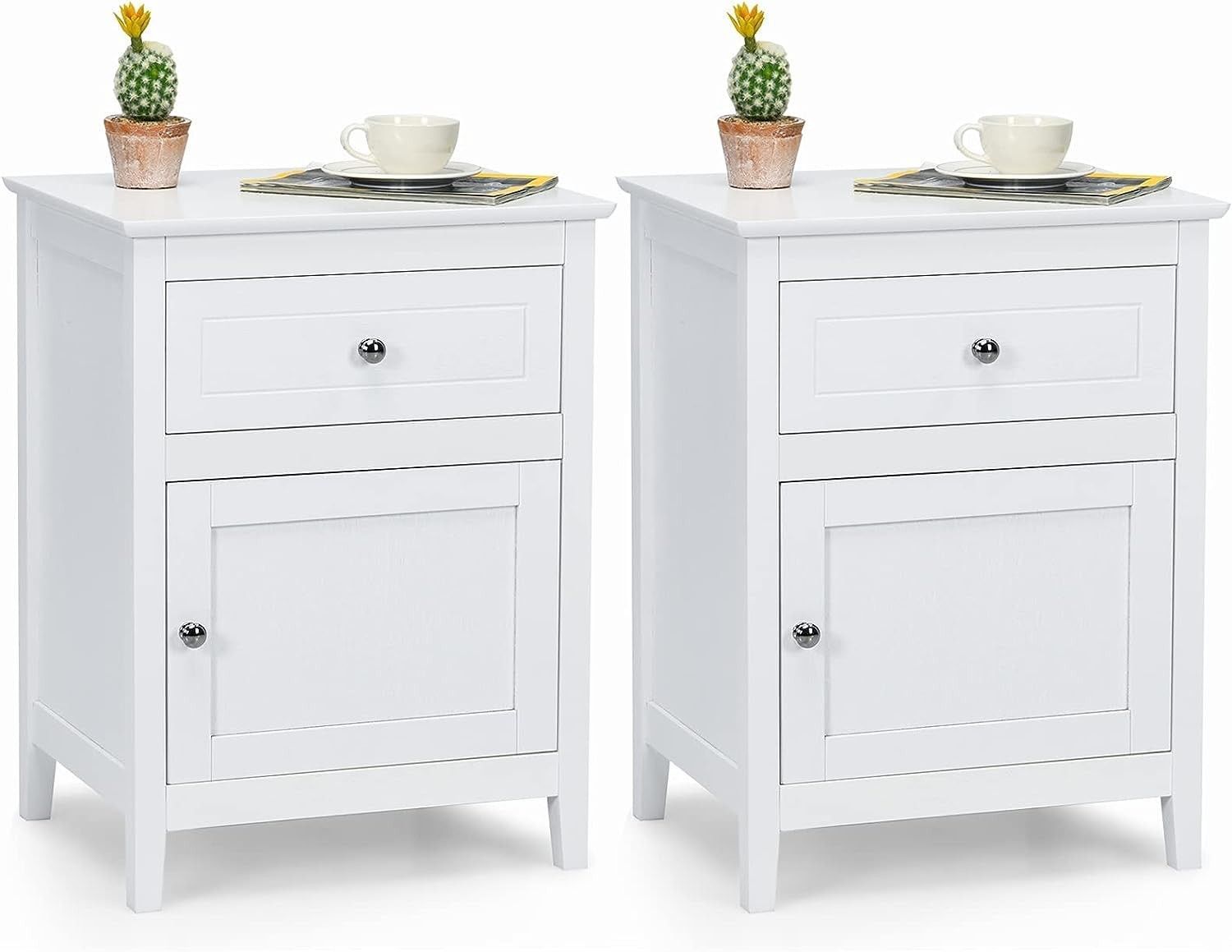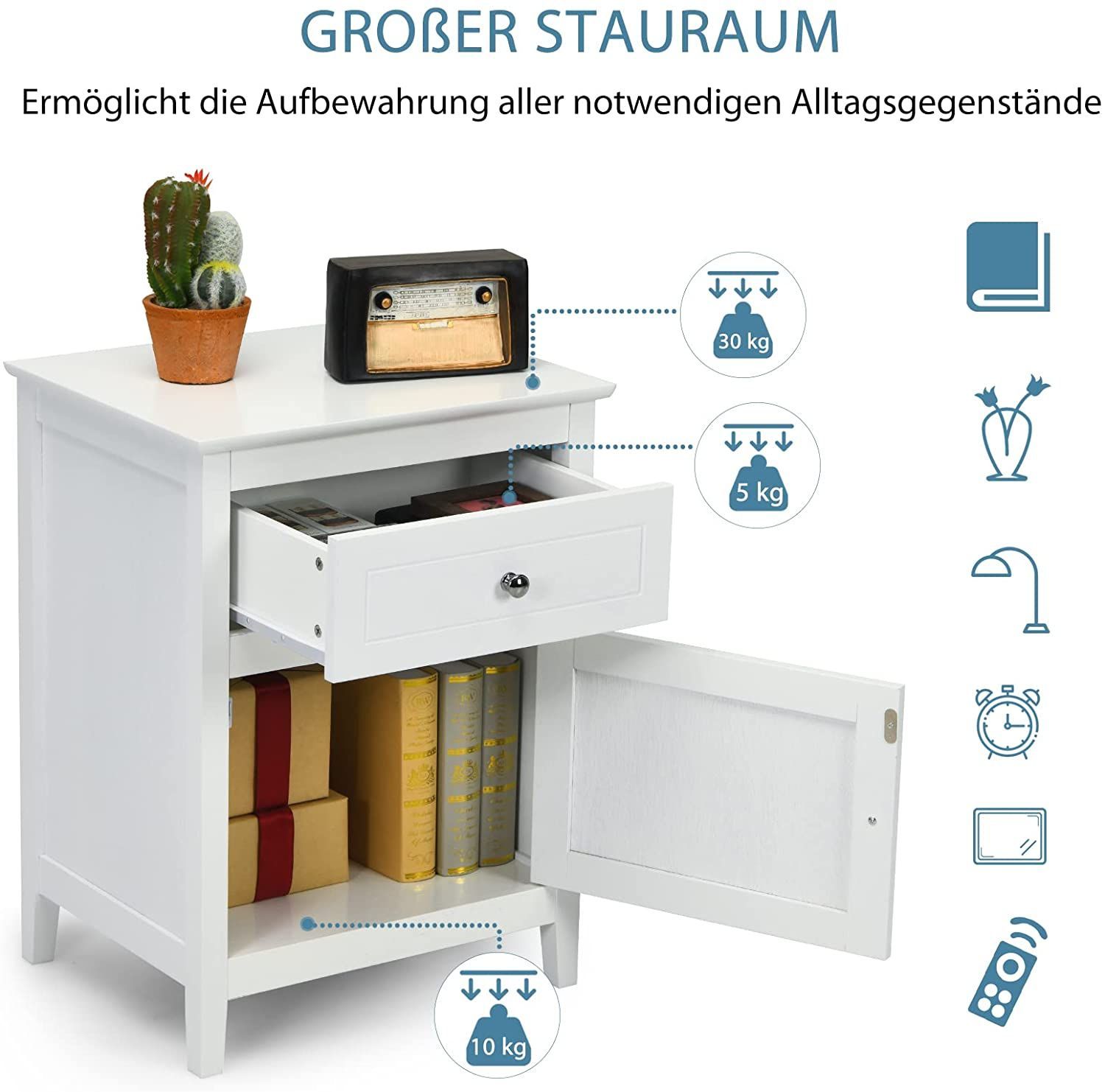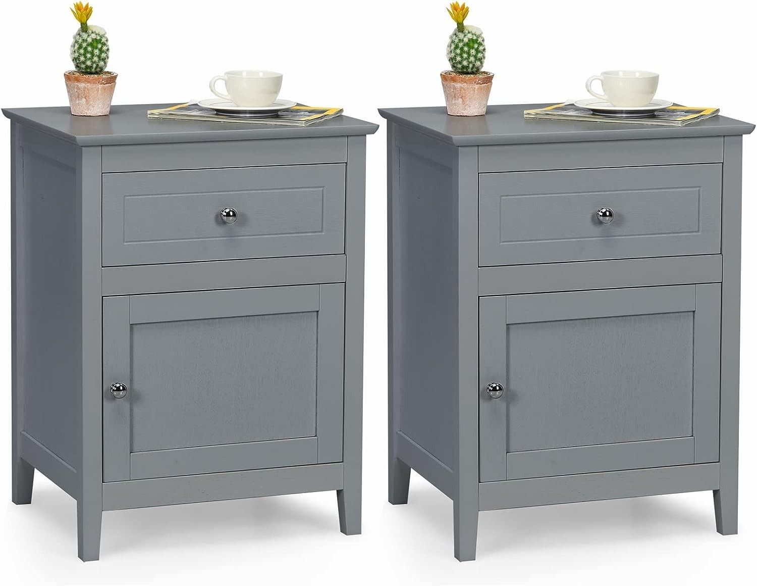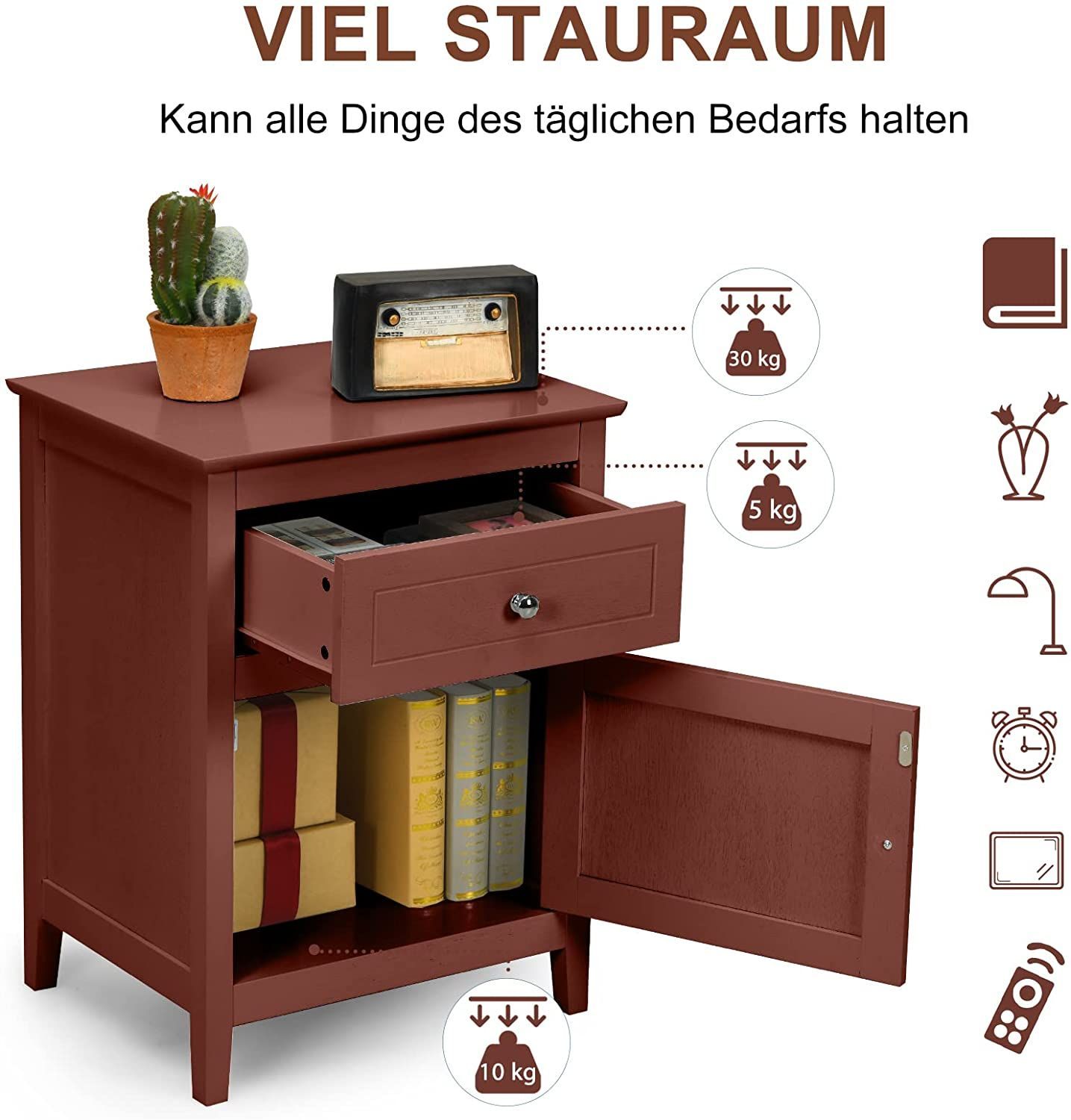 Nachttisch Nachtschrank mit Schiebeschublade & Tür, 2-stufiger Akzenttisch Sofatisch