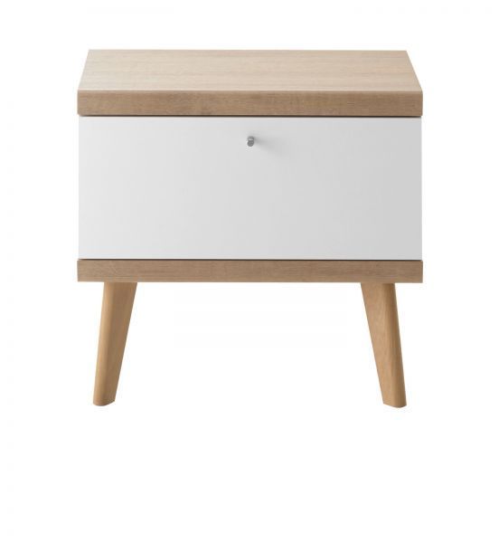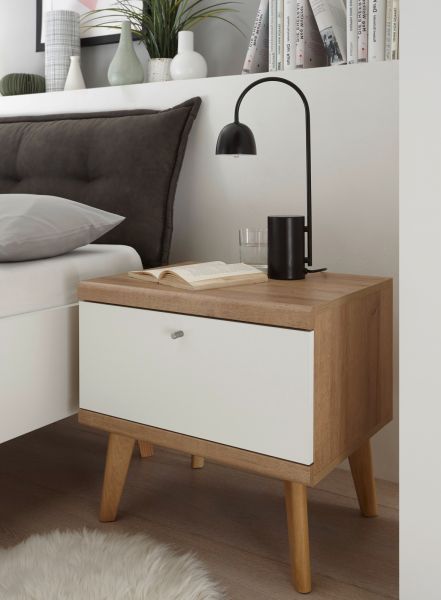 Nachttisch Nachtschrank weiß Eiche Riviera Nachtkonsole Hygge Nacht Kommode Helge