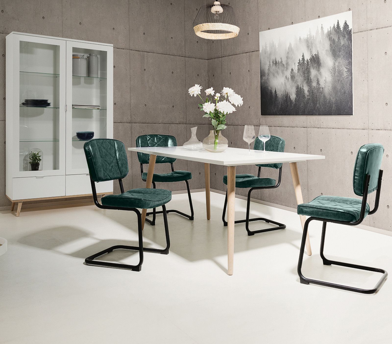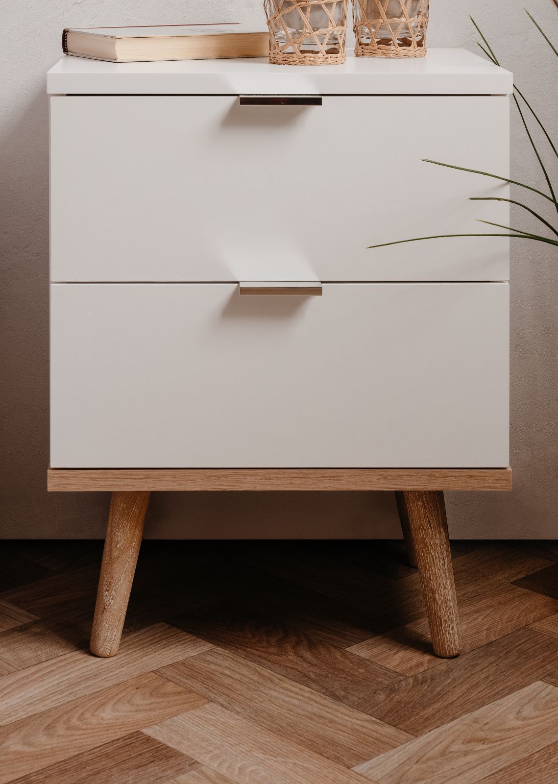 Nachttisch Nachtschrank weiß Eiche Sonoma Nachtkonsole Schubladen Chrom Lundby