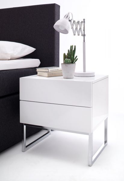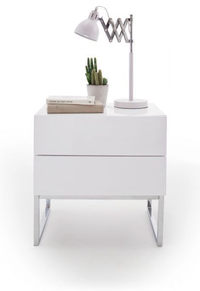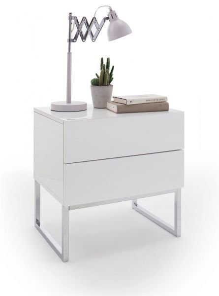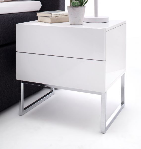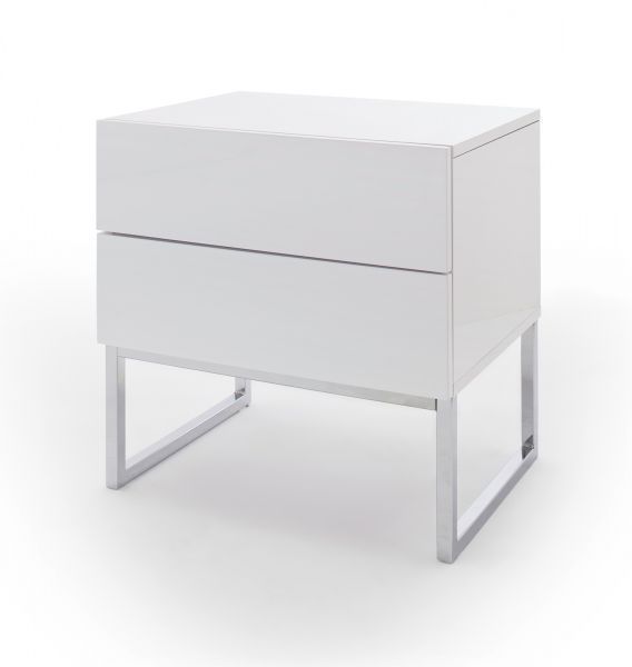 Nachttisch Nola Nachtkonsole in Hochglanz weiß lackiert Nachtkommode