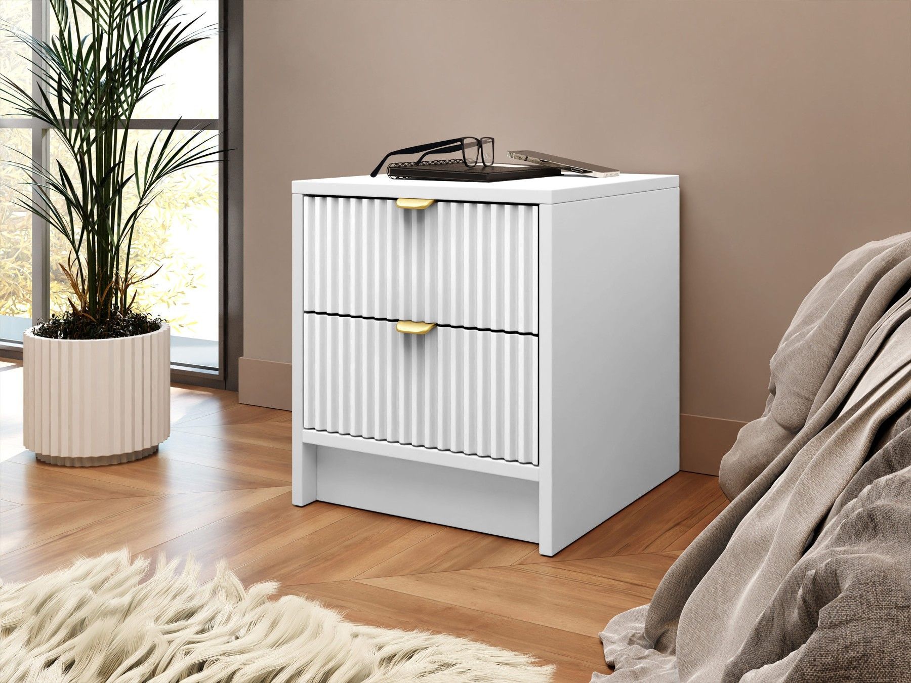 Nachttisch Tireno 2SZ mit zwei Schubladen Tisch Aluminiumgriff in der Farbe Gold M24