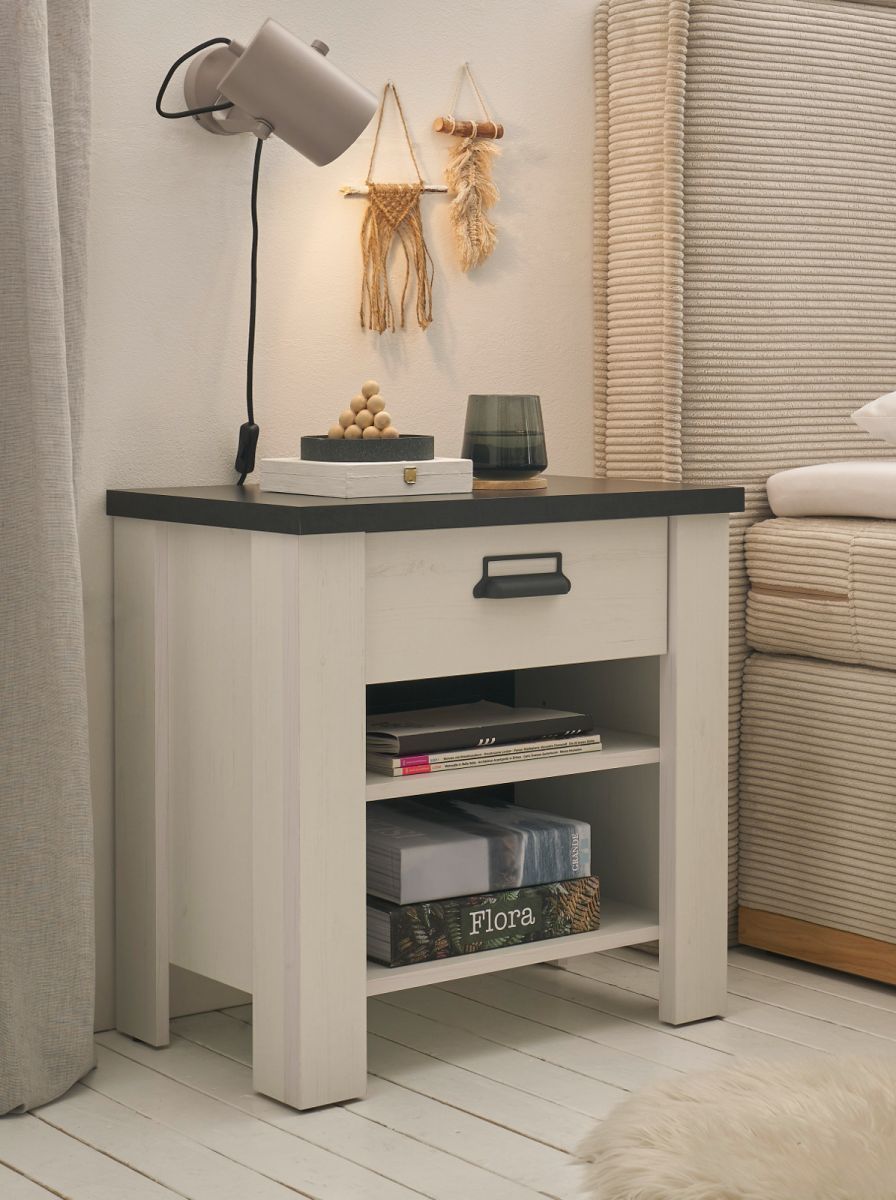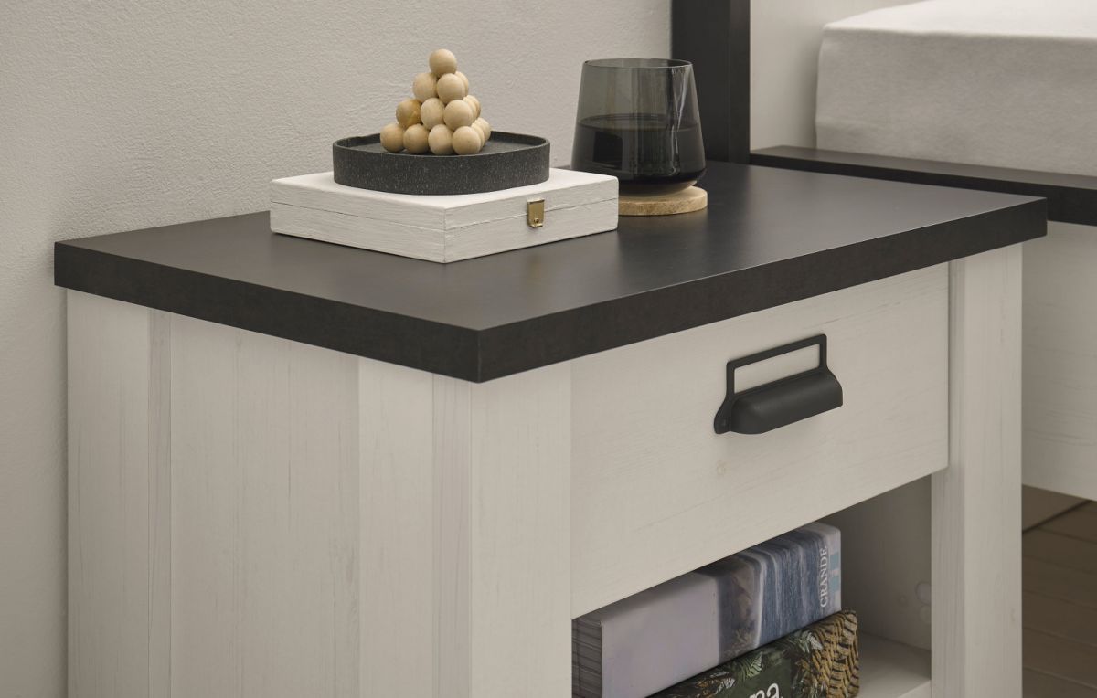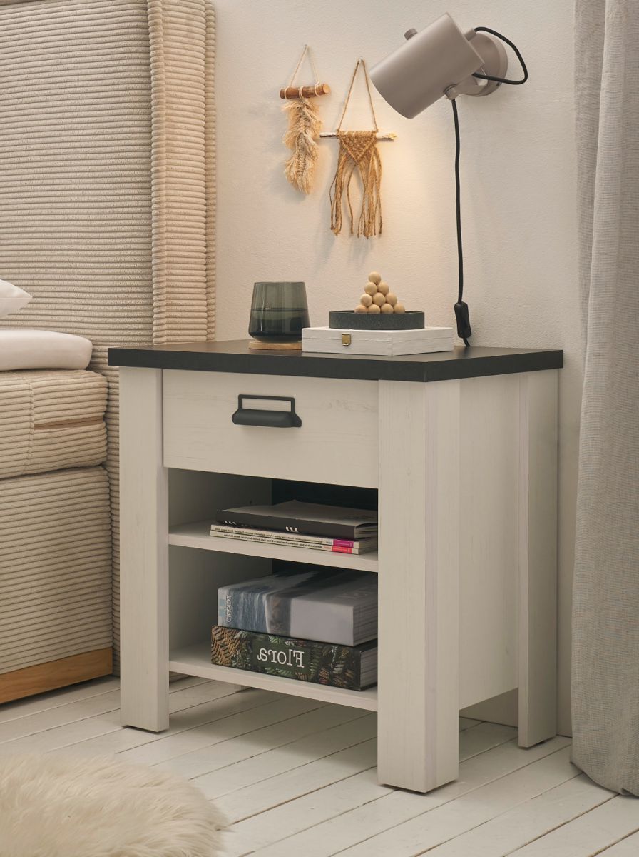 Nachttisch weiß Landhaus Nachtschrank in Komforthöhe mit Schublade Soft-Close Stove