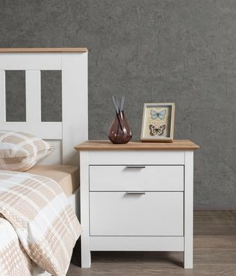 Doppelbett Nachttisch aus Naturholz Nachttisch mit Schubladen Möbel Naturholz