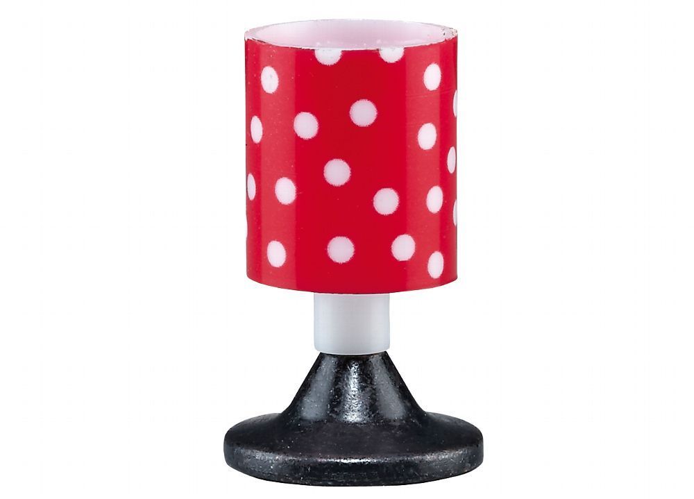 Nachttischlampe 3,5V Tischlampe rot/ schwarz für Puppenhaus Puppenstube Kahlert 10483