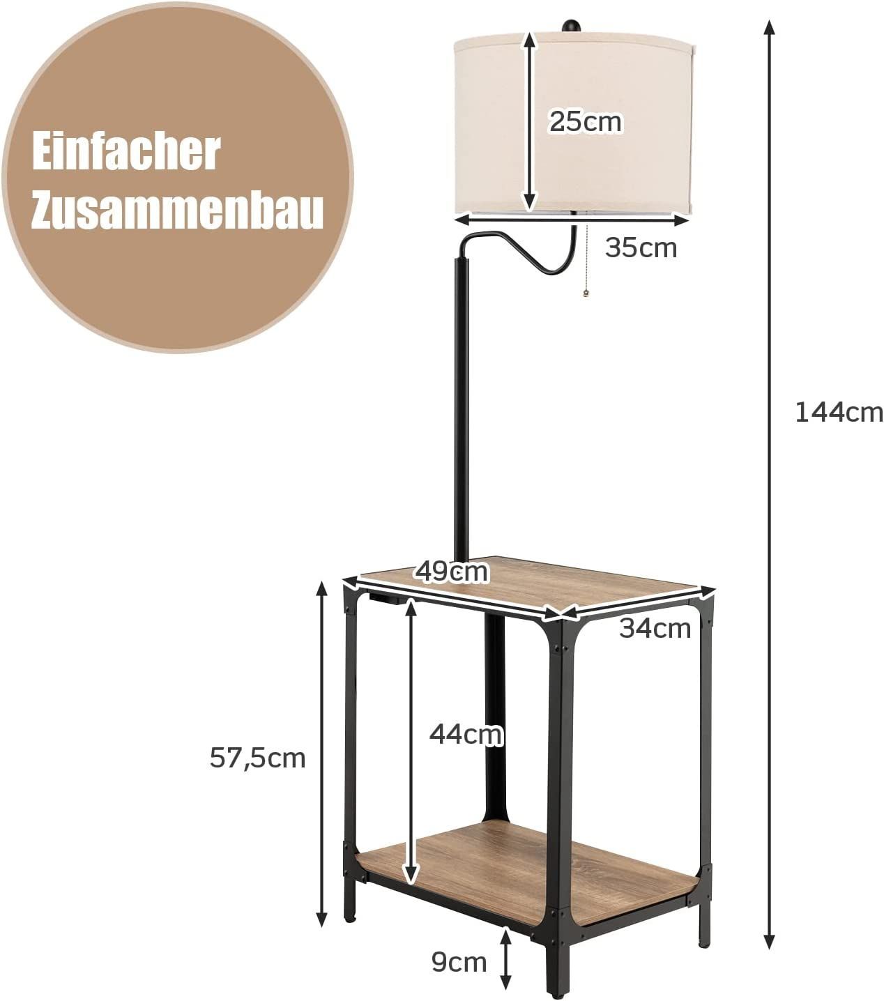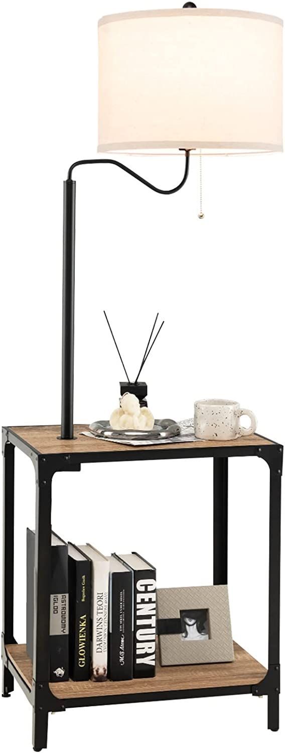 Nachttischlampe 360° drehbar, Stehlampe mit Beistelltisch und USB