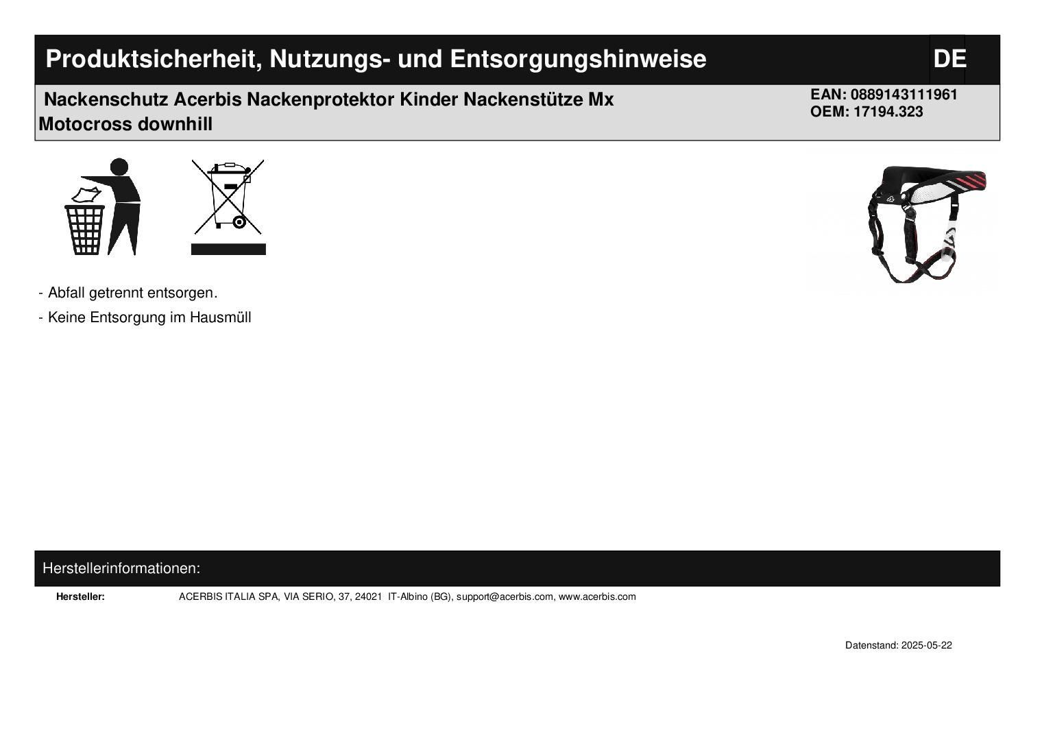Acerbis Nackenschutz Acerbis Nackenprotektor Kinder Nackenstütze Mx Motocross downhill