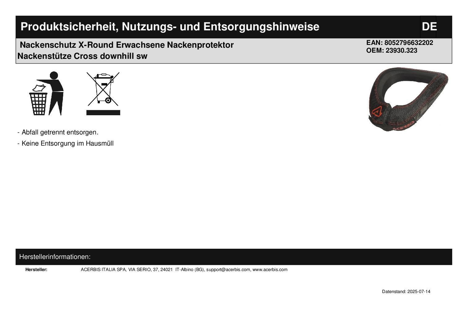 Acerbis Nackenschutz X-Round Erwachsene Nackenprotektor Nackenstütze Cross downhill sw