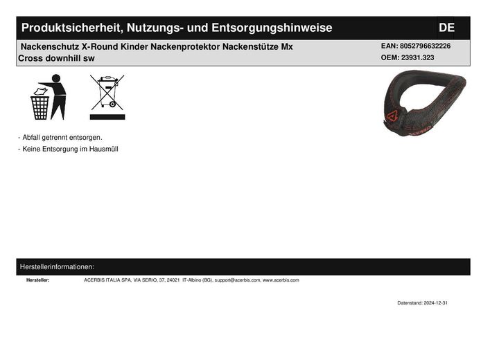 Acerbis Nackenschutz X-Round Kinder Nackenprotektor Nackenst?tze Mx Cross downhill sw