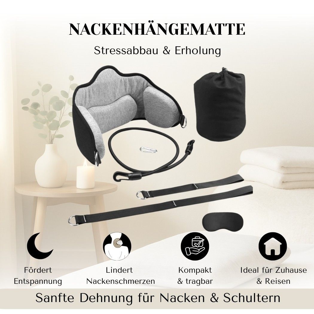 Nacken-Hängematte – Entspannung & Schmerzlinderung für Nacken & Schultern Diese tragbare Nacken-Hängematte sorgt für sanfte Dehnung, fördert die Durchblutung und hilft effektiv bei Nackenverspannungen, Müdigkeit und Stress. Ideal für Zuhause, Büro oder unterwegs. Highlights: Entlastet Nacken & Schul