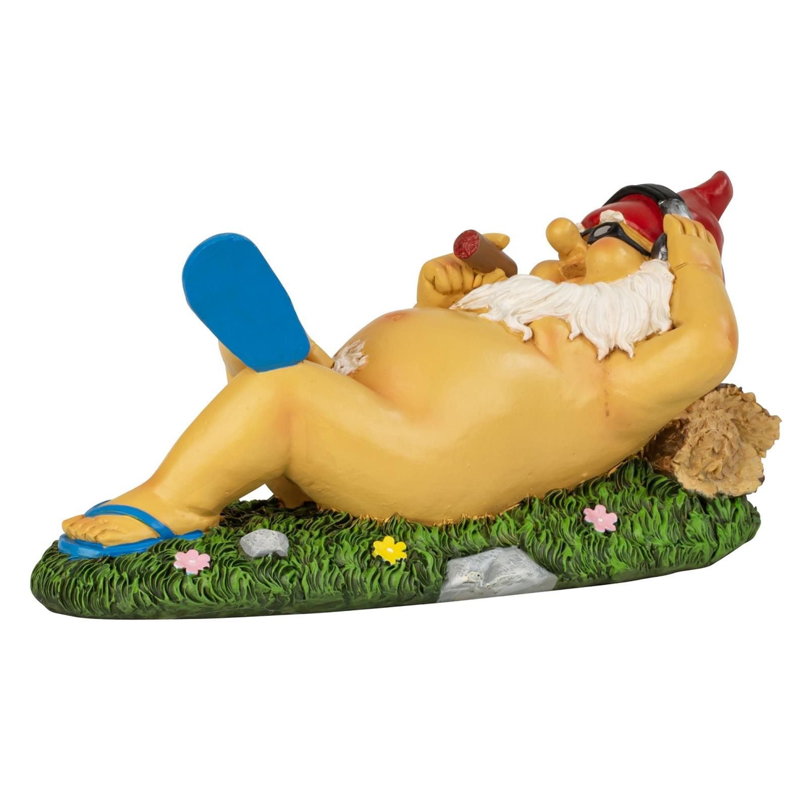 Nackter Zwerg mit Kopfhörer und Zigarre Gartenzwerg 30 cm
