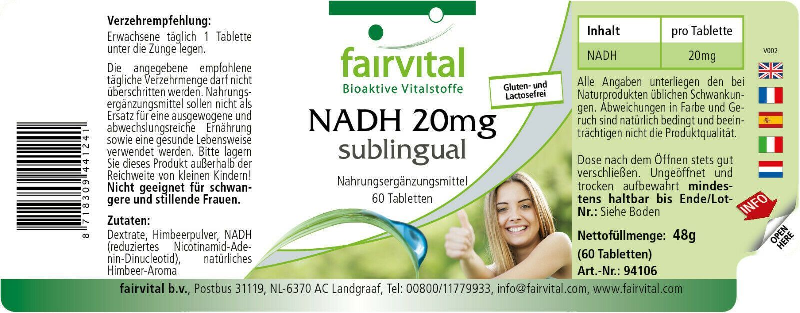 fairvital NADH 20mg sublingual 60 Tabletten - fairvital
