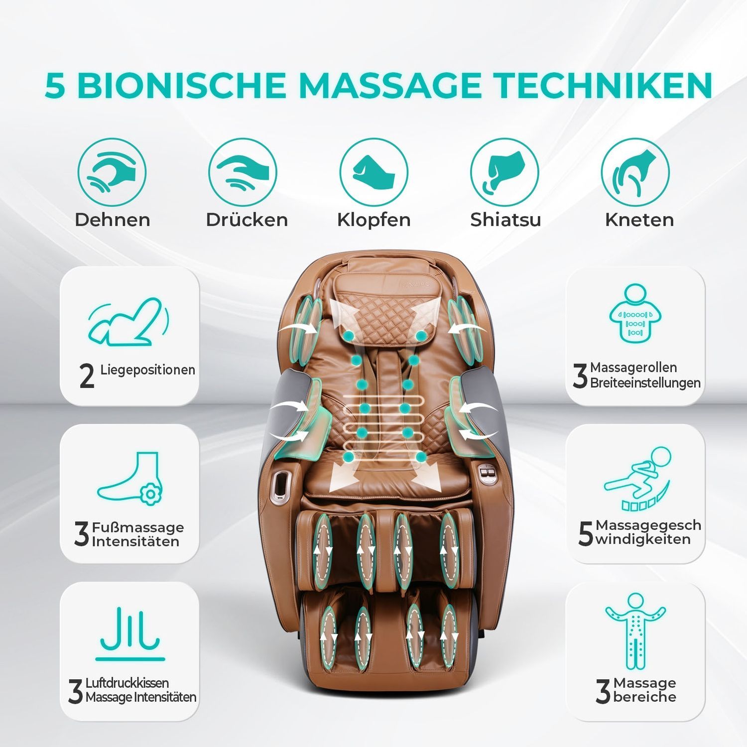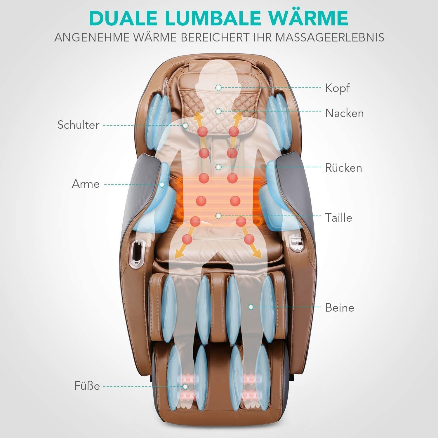 NAIPO MGC-A350BR, Massagesessel Shiatsu Massagestuhl Zero Gravity für Ganzkörper, mit Heizung, SL Track, Klopfen, Kneten, Luft-Massage-System, USB, Bluetooth 3D Surround Sound Musik, Für Zuhause und Büro - Braun