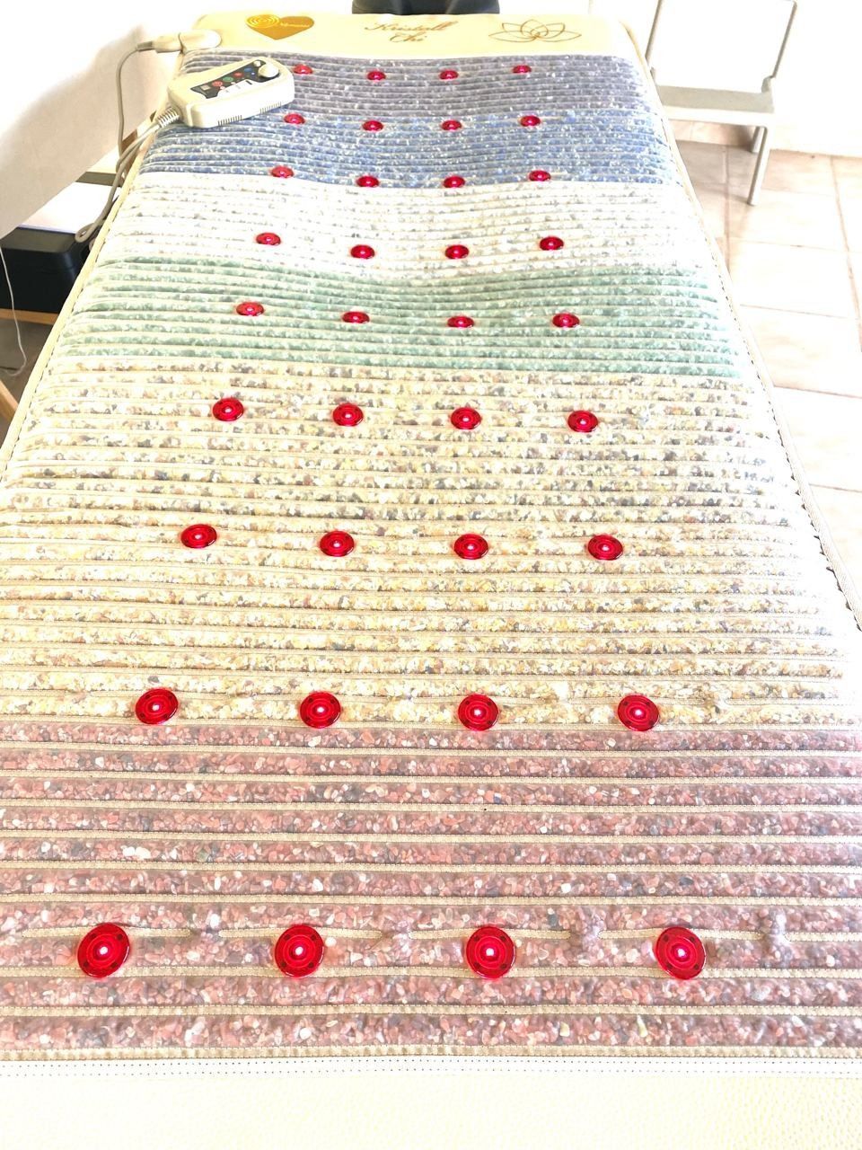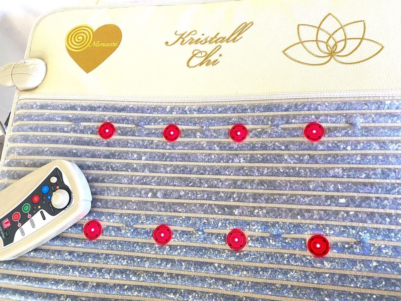 Weiterentwicklung der bekannten Premium Kristallmatte - Namasté Kristall Chi Matte Mit Herzöffner- und Chi Vital Programmierung Vereint verschiedene Anwendungen + Pulsierendes Magnetfeld + Infrarot Tiefenwärme + Negative Ionen + Biophotonen Lichttherapie + Heilwirkung von 7 Heilsteinen + Rein