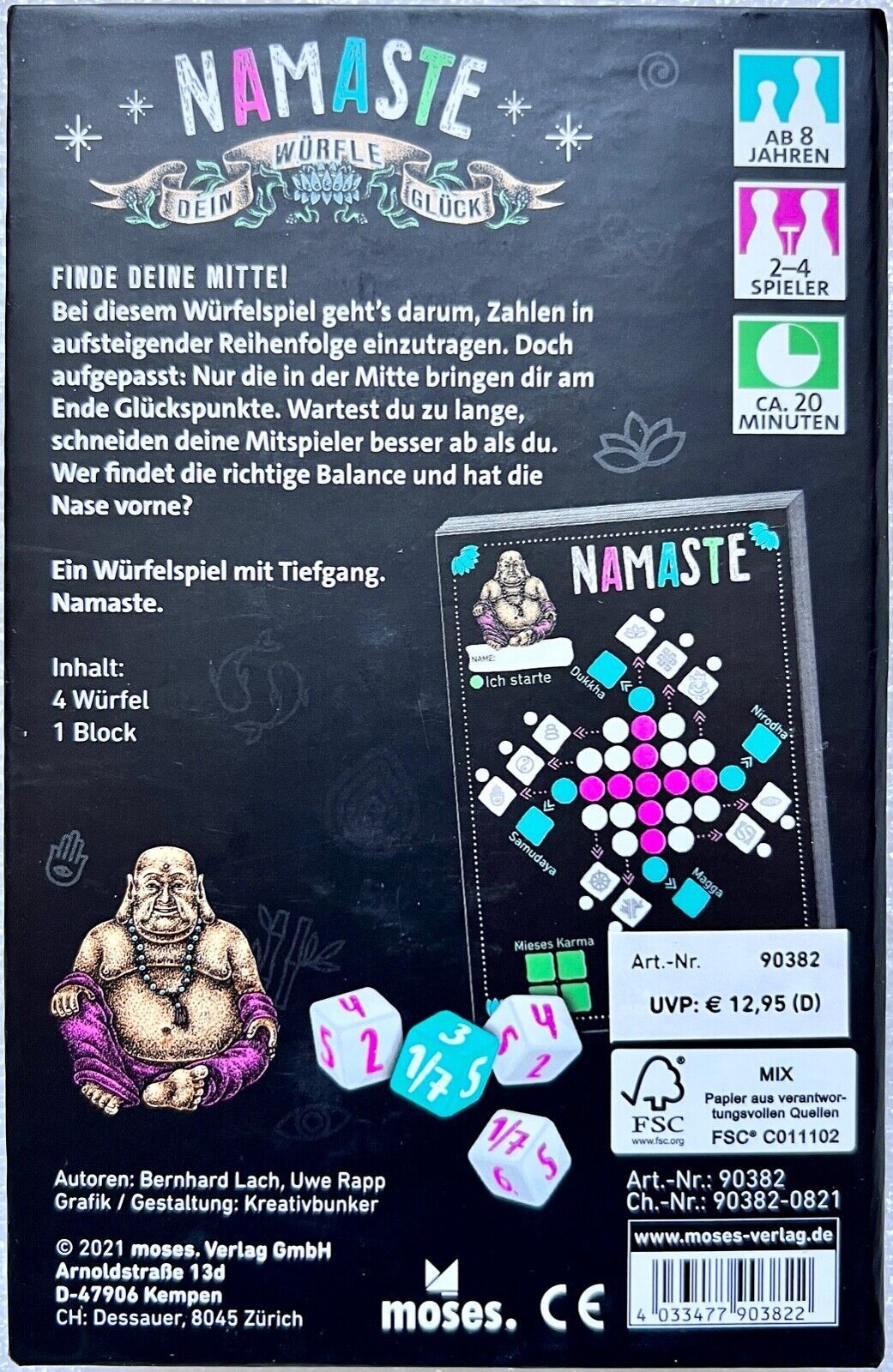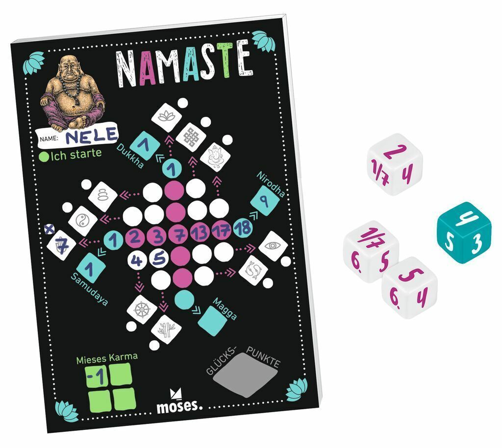 Namaste Moses Familienspiel Würfelspiel Kinderspiel Glücksspiel Roll und Write