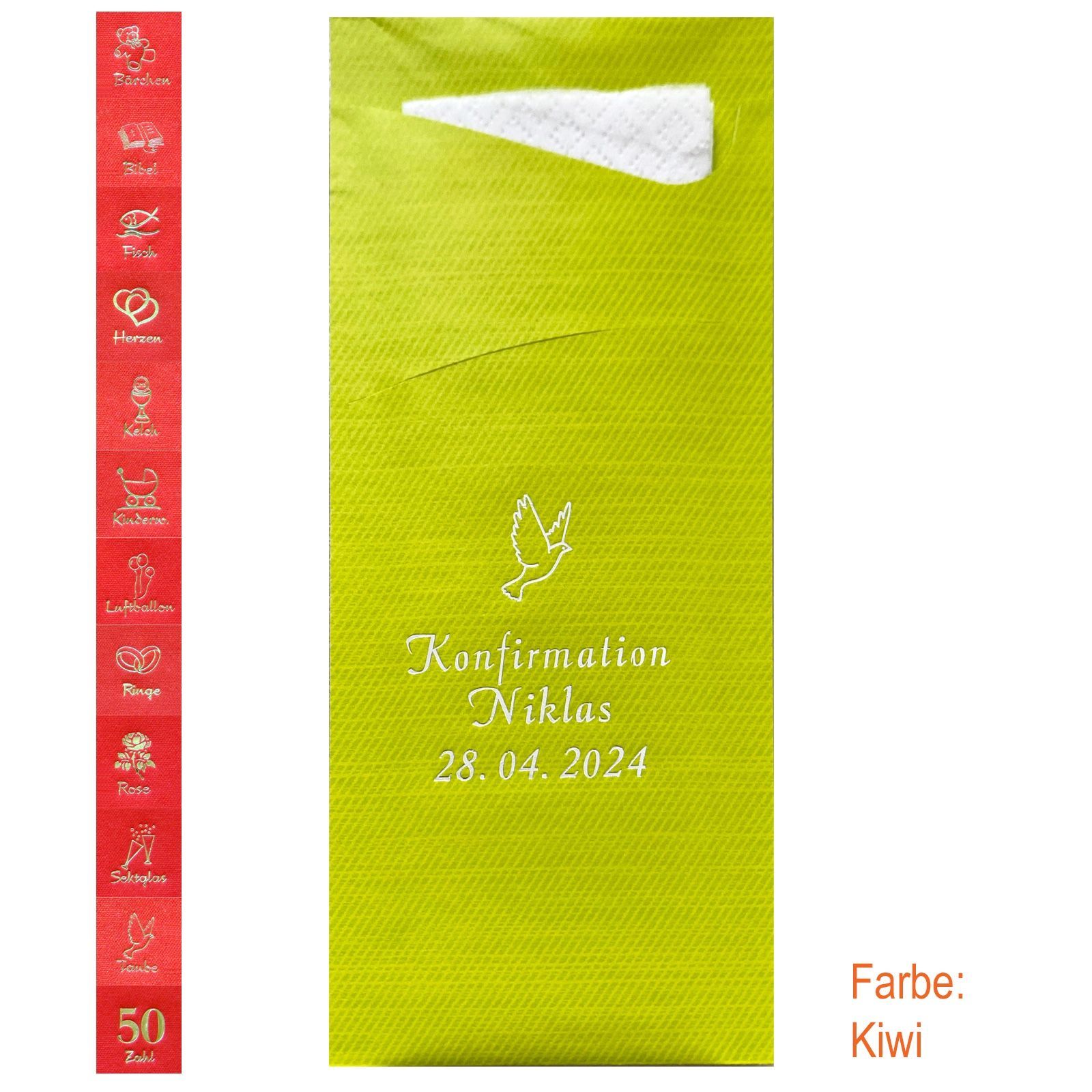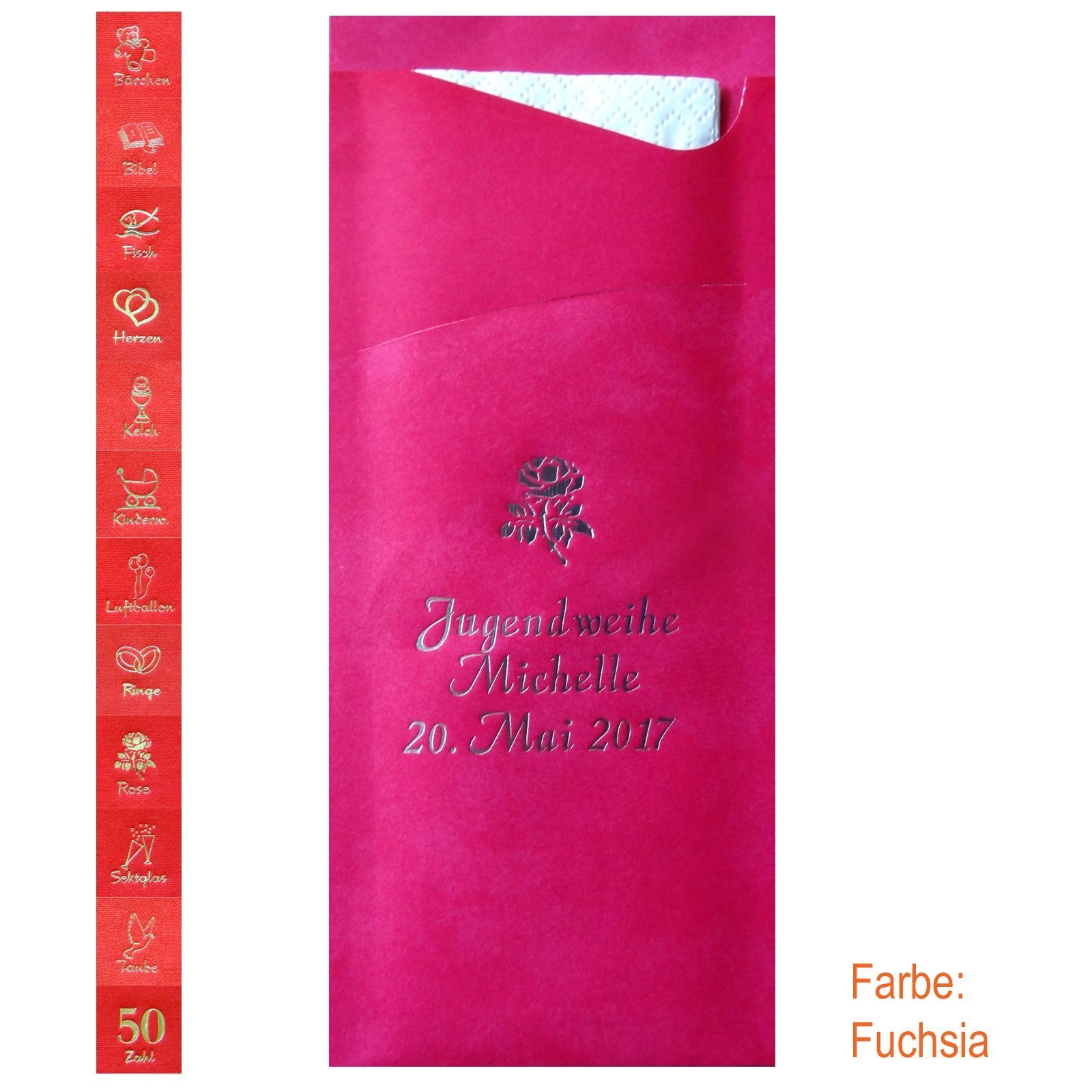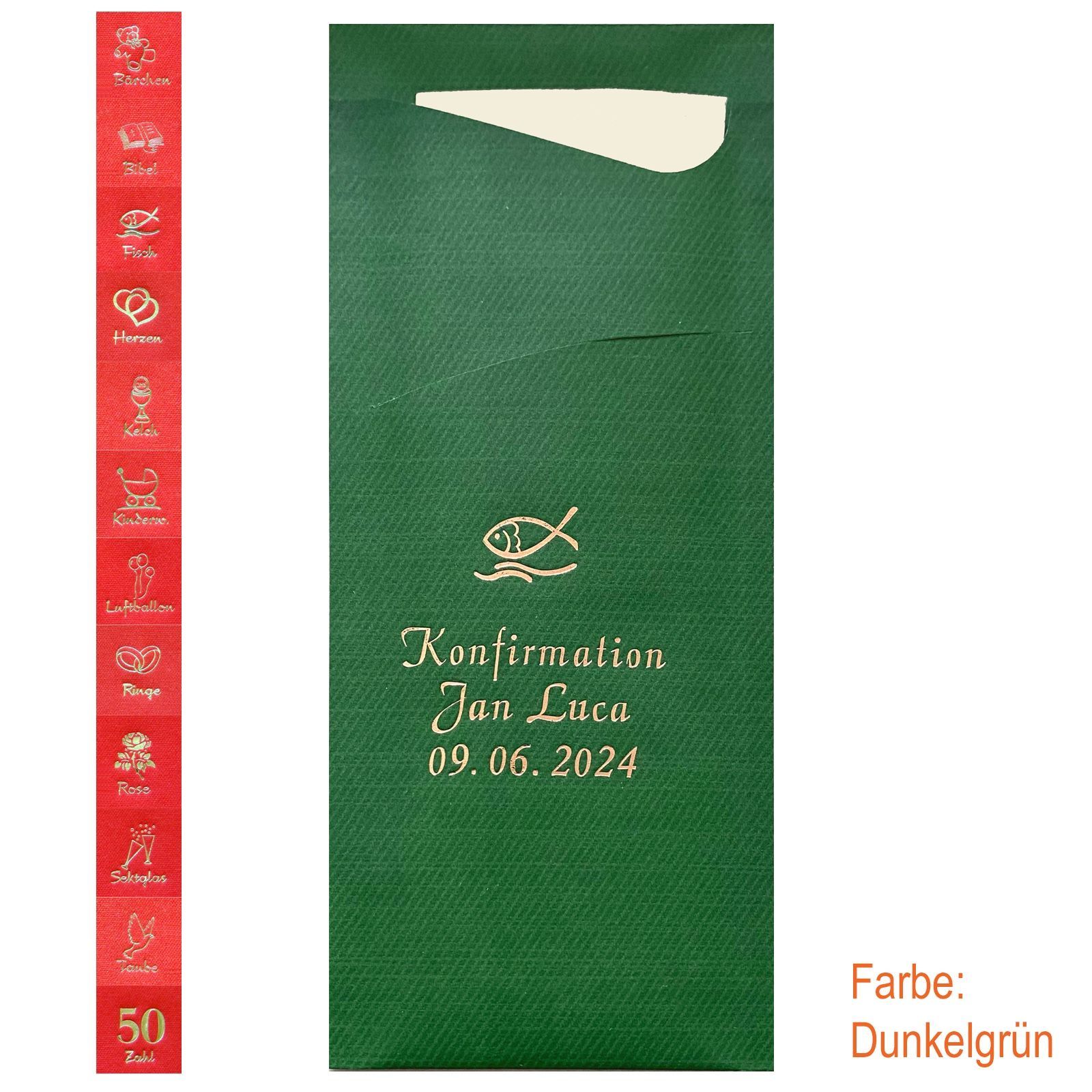 Namen Bestecktaschen mit Servietten zu Jugendweihe Konfirmation Kommunion Lebenswende