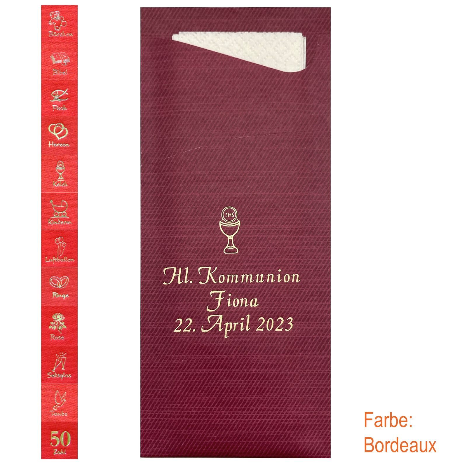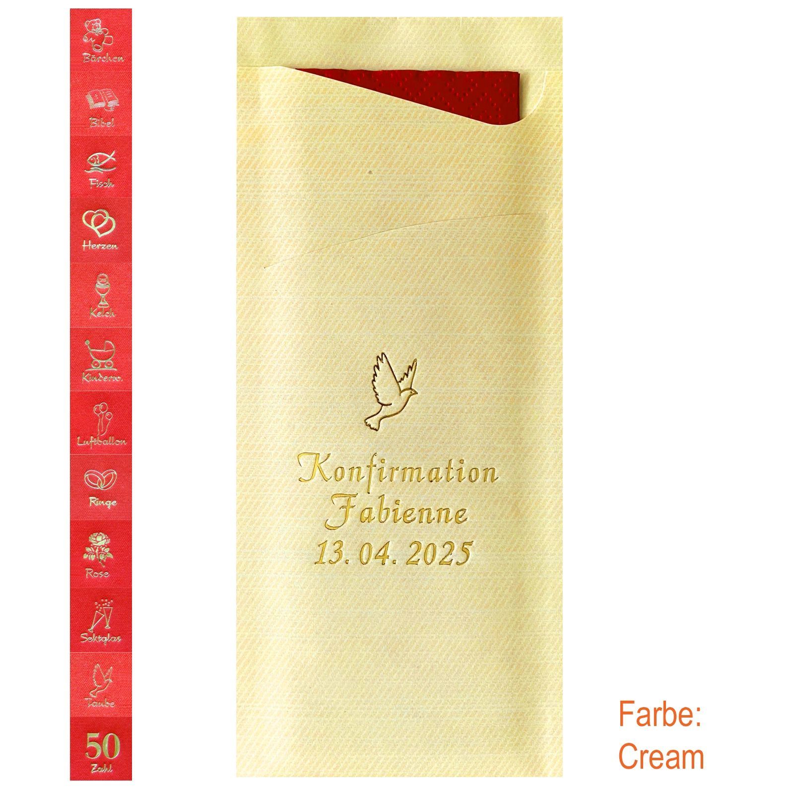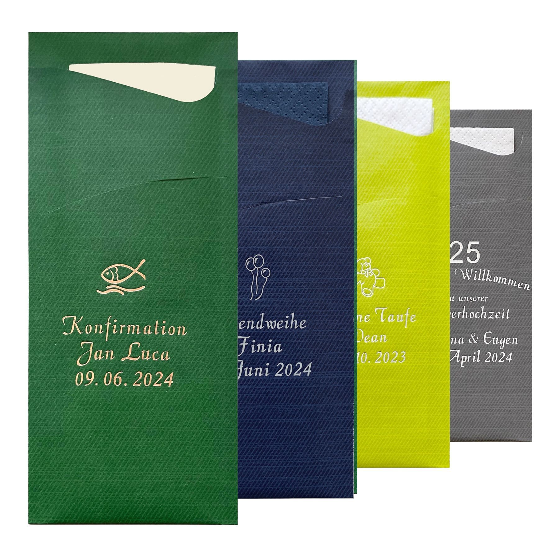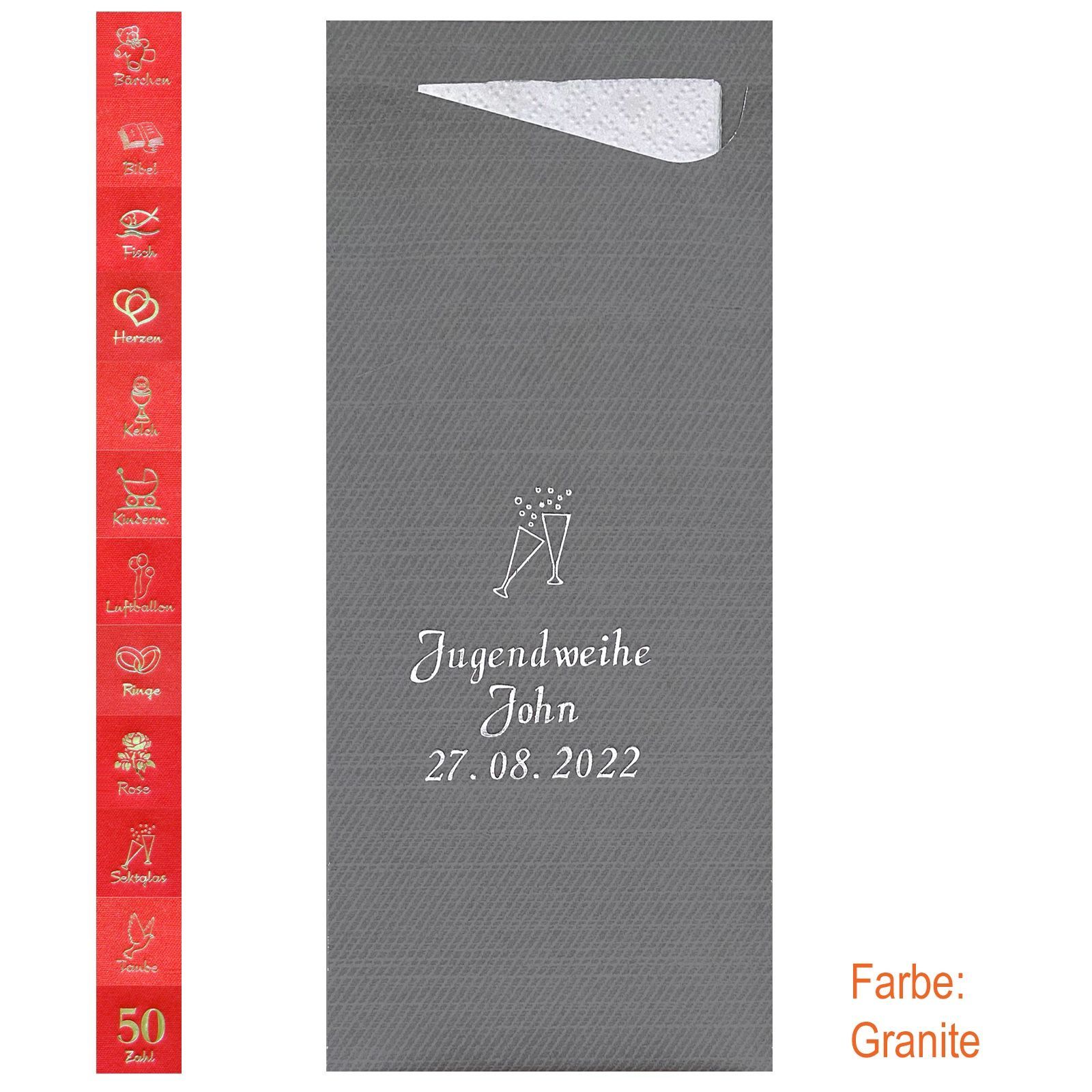 Namen Bestecktaschen mit Servietten zu Jugendweihe Konfirmation Kommunion Lebenswende