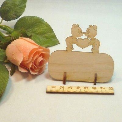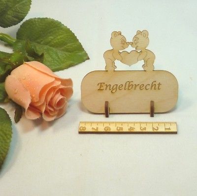 Namensschild aus Holz süßer Teddy Blanko oder m. Gravur Hochzeit, Geburtstag