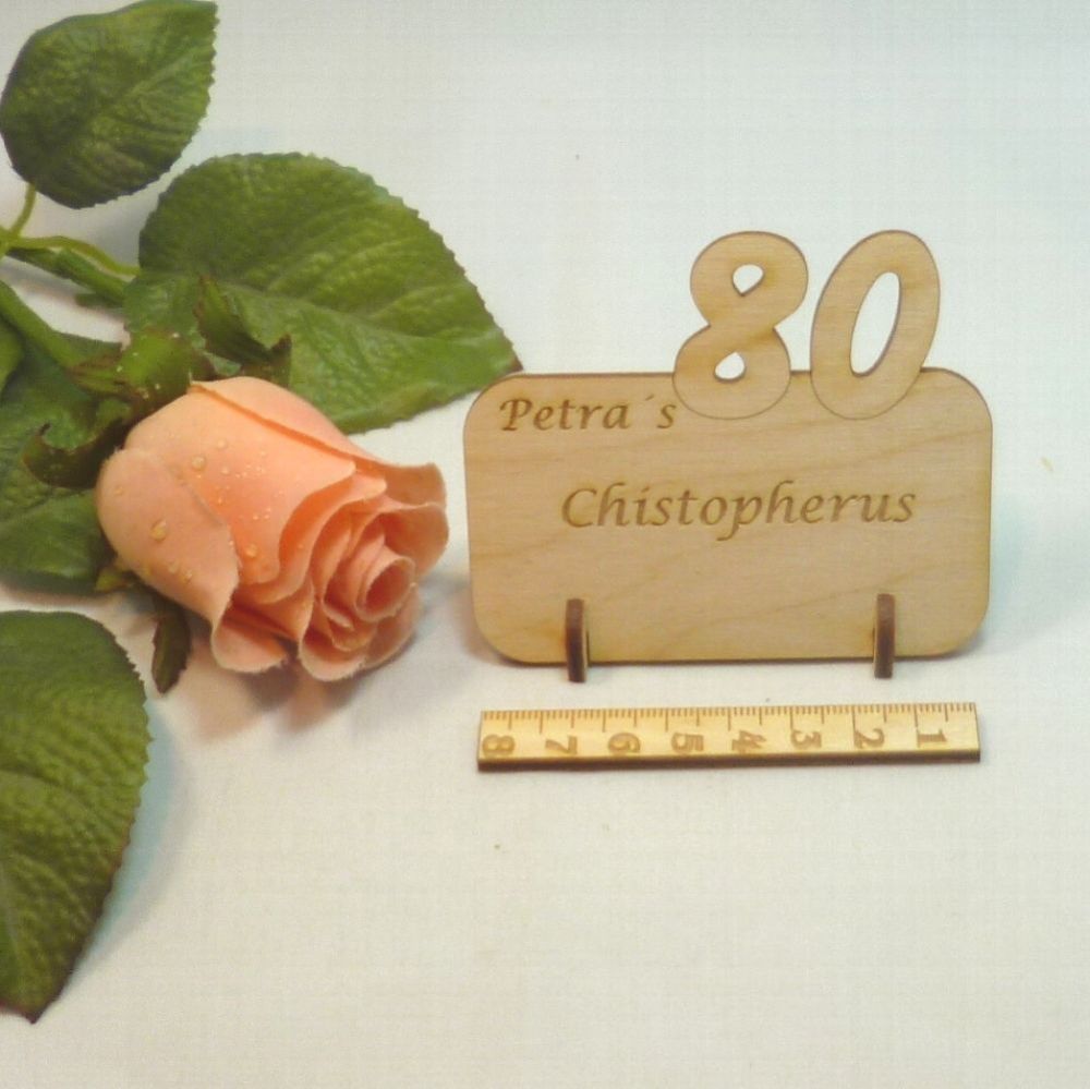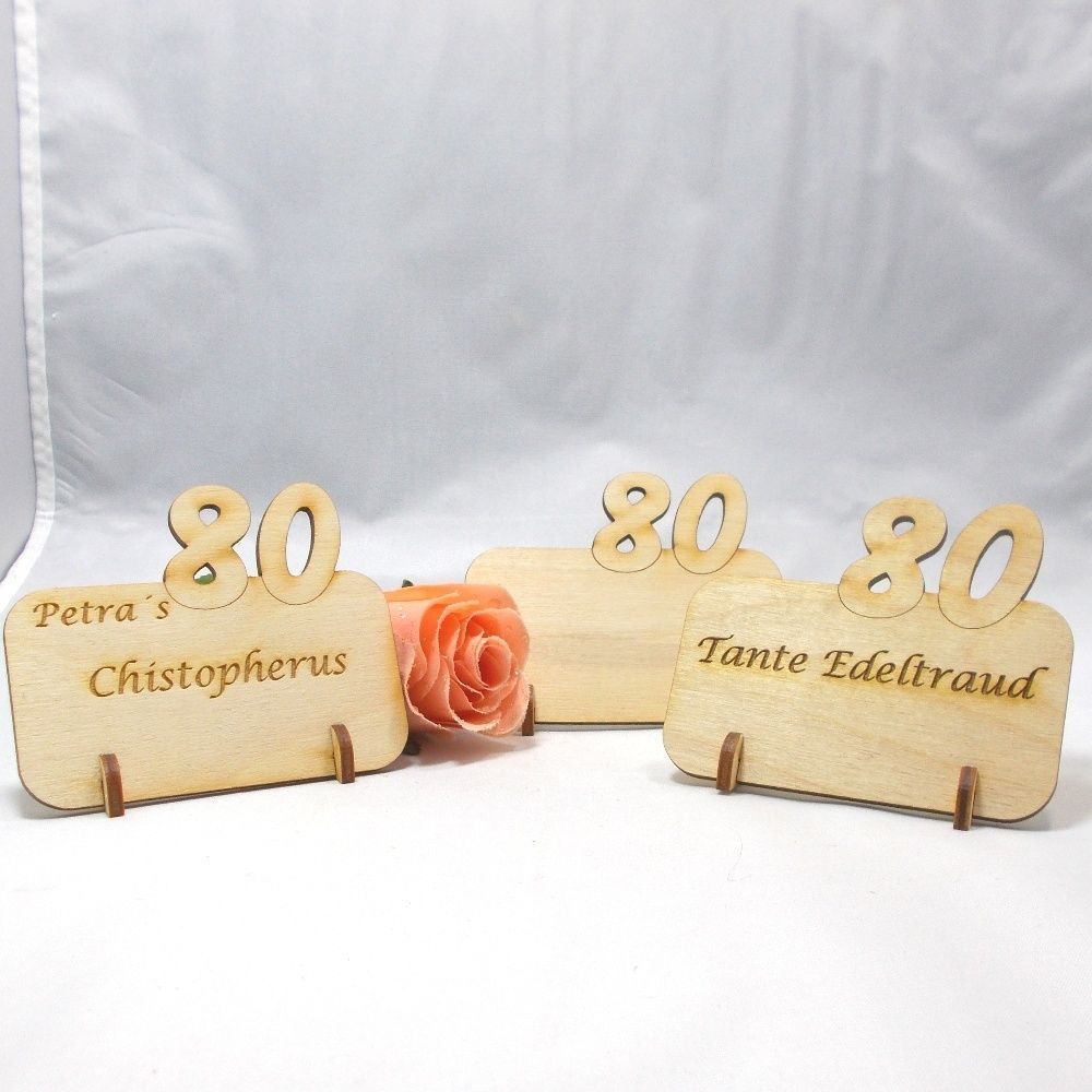Namensschild aus Holz zum 80. Blanko oder m. Gravur für Geburtstag Deko