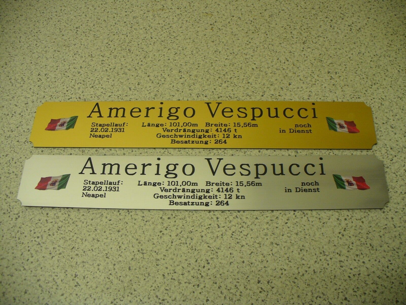 Namensschild für Modellständer mit Daten - Amerigo Vespucci