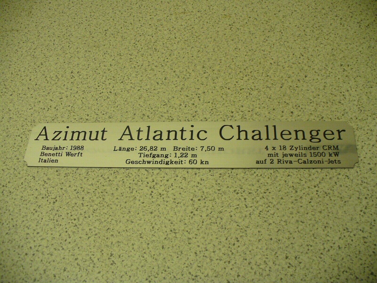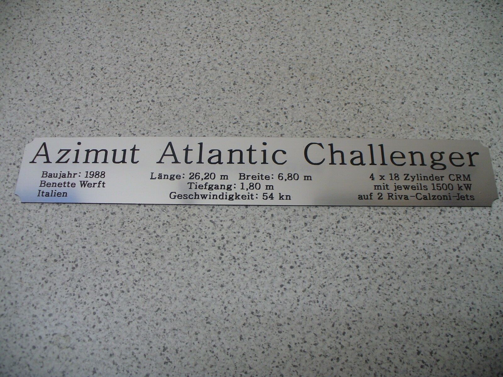 Namensschild für Modellständer mit Daten - Azimut Atlantic Challenger