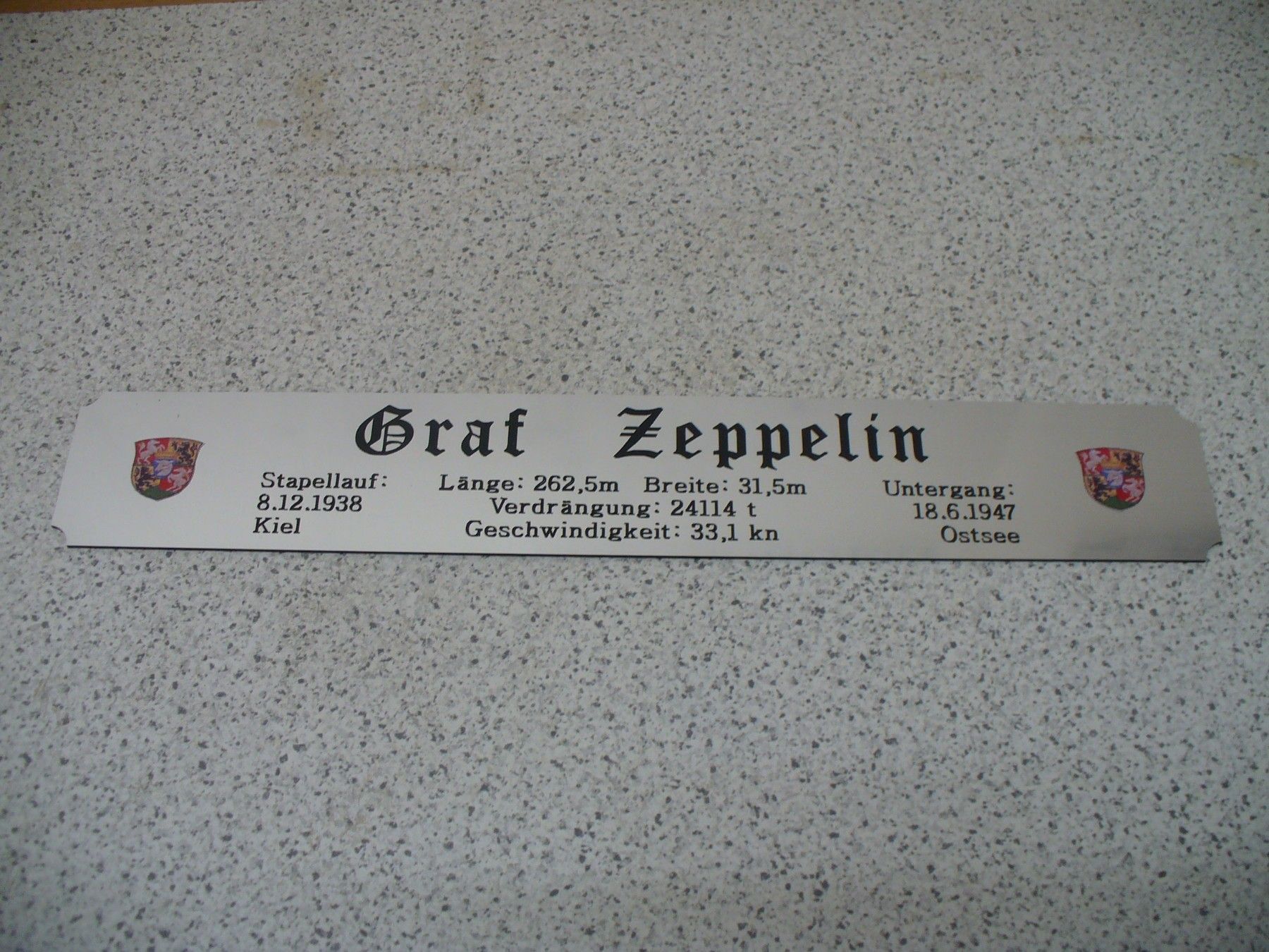 Namensschild für Modellständer mit Daten - Flugzeugträger Graf Zeppelin