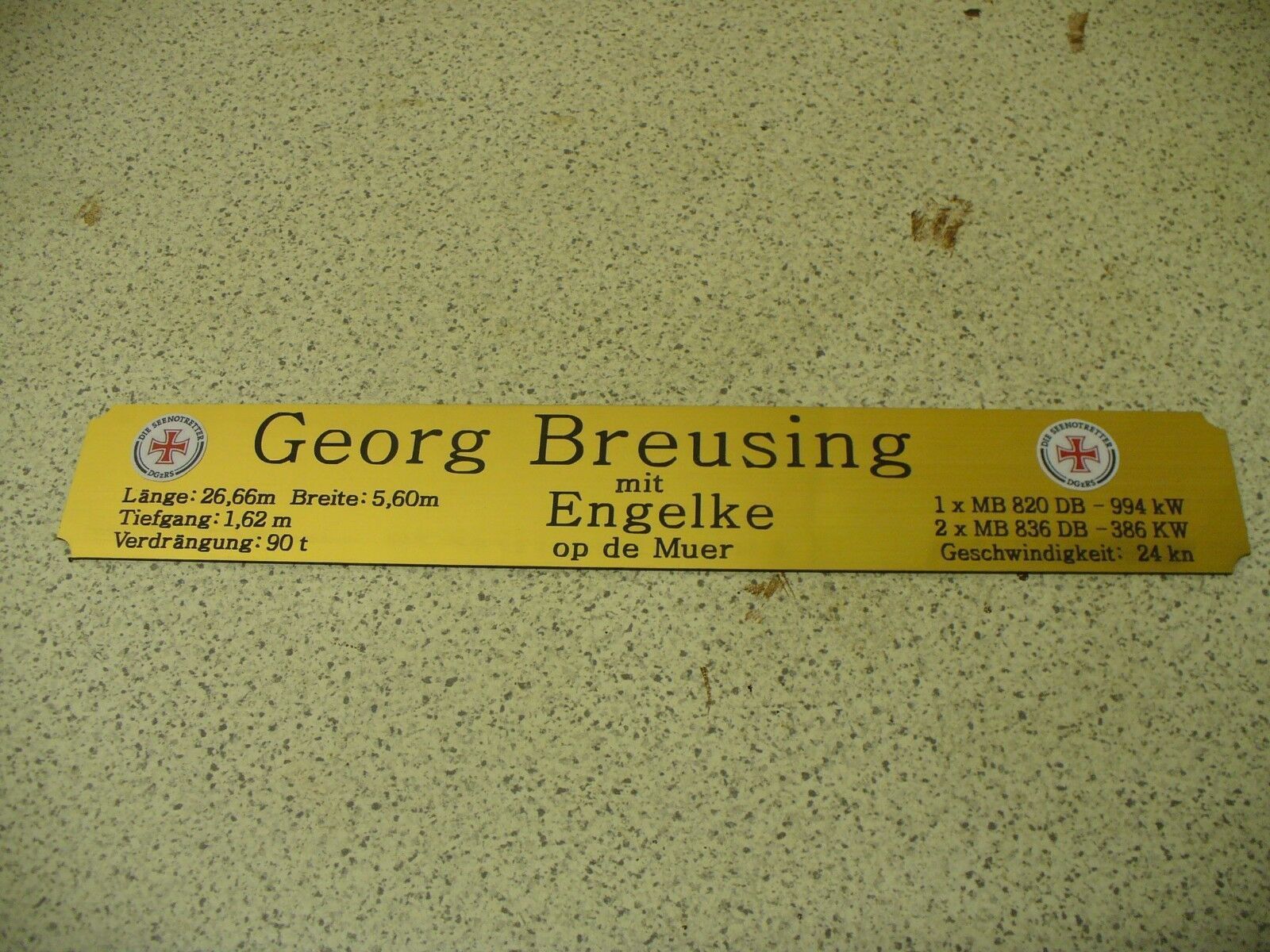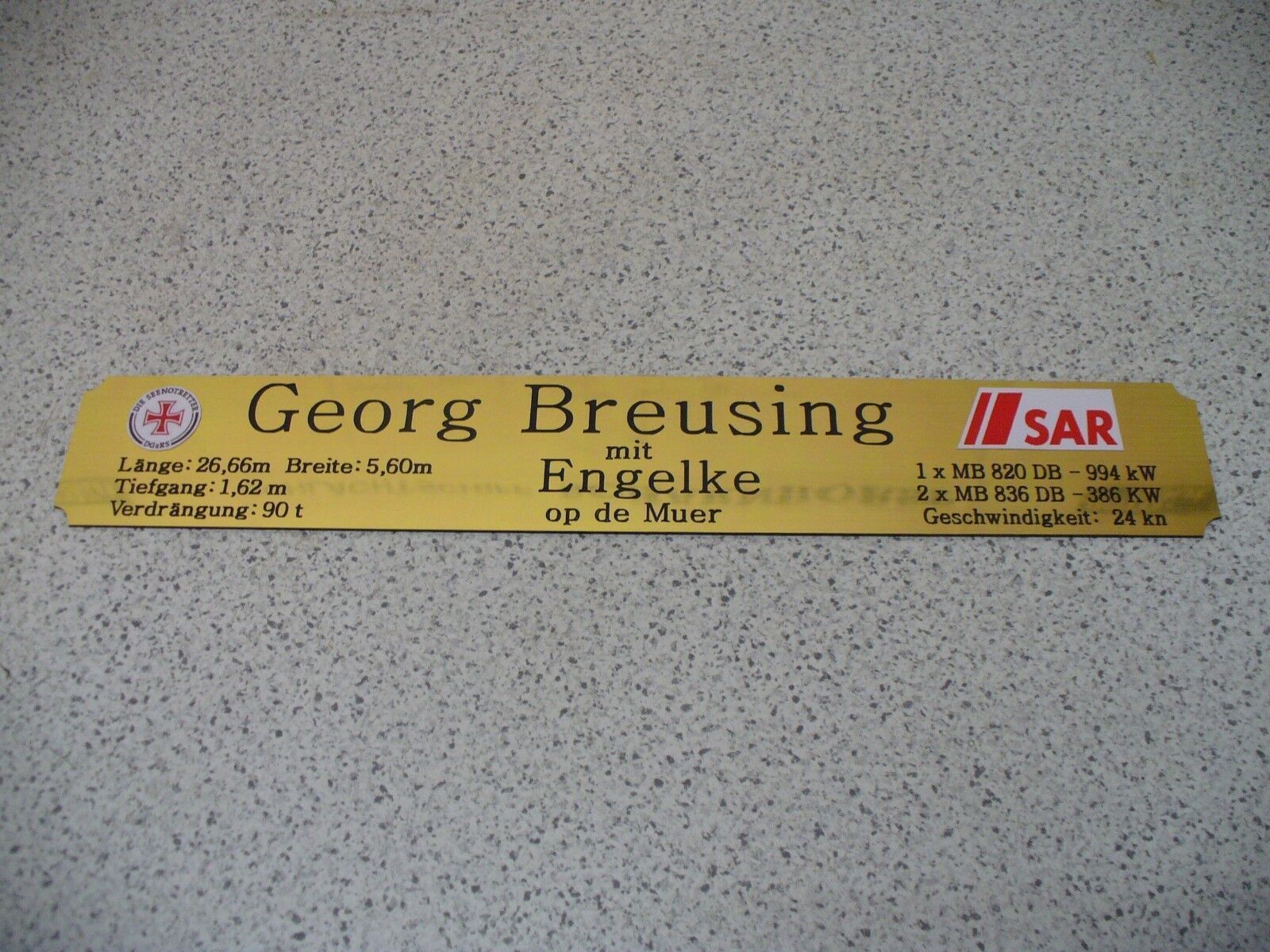 Sie bieten hier auf: 1 exclusives Namensschild mit Daten - Georg Breusing mit Engelke - mit farbigen Logos und verschiedenen Daten (siehe Bild) goldfarbig mit schwarzem Schriftzug (auch in weiss - oder silberfarbig möglich --> dann bitte angeben) Abmessung: 275 x 43 x 1,5 mm Das Schild ist von mi