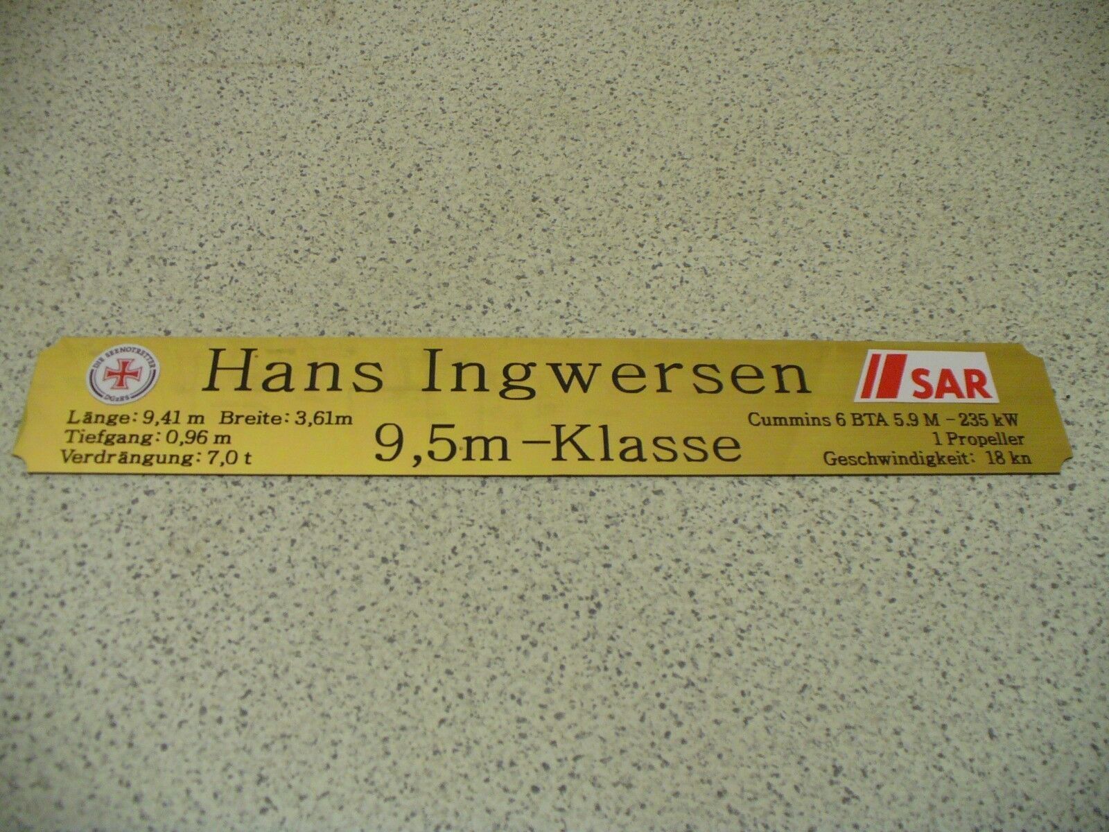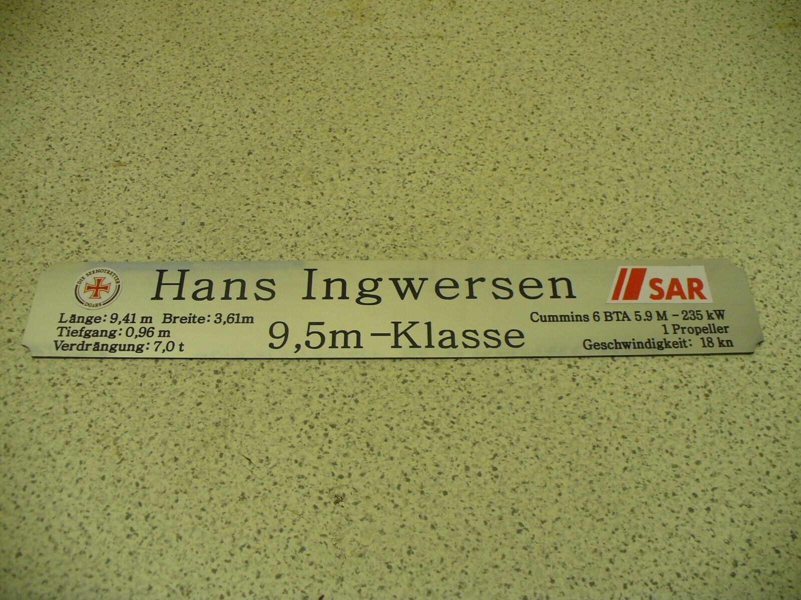 Sie bieten hier auf: 1 exclusives Namensschild mit Daten - Hans Ingwersen - mit farbigen Logos und verschiedenen Daten (siehe Bild) goldfarbig mit schwarzem Schriftzug (auch in weiss - oder silberfarbig möglich --> dann bitte angeben) Abmessung: 275 x 43 x 1,5 mm Das Schild ist von mir mit einer