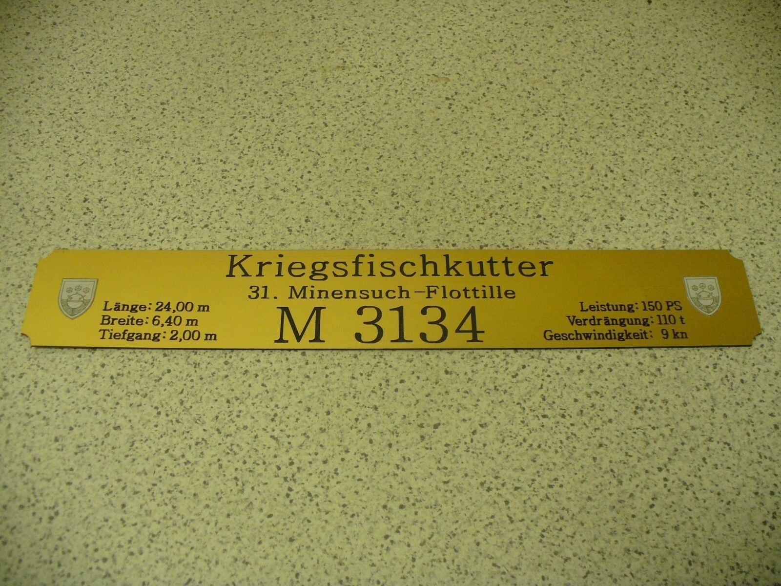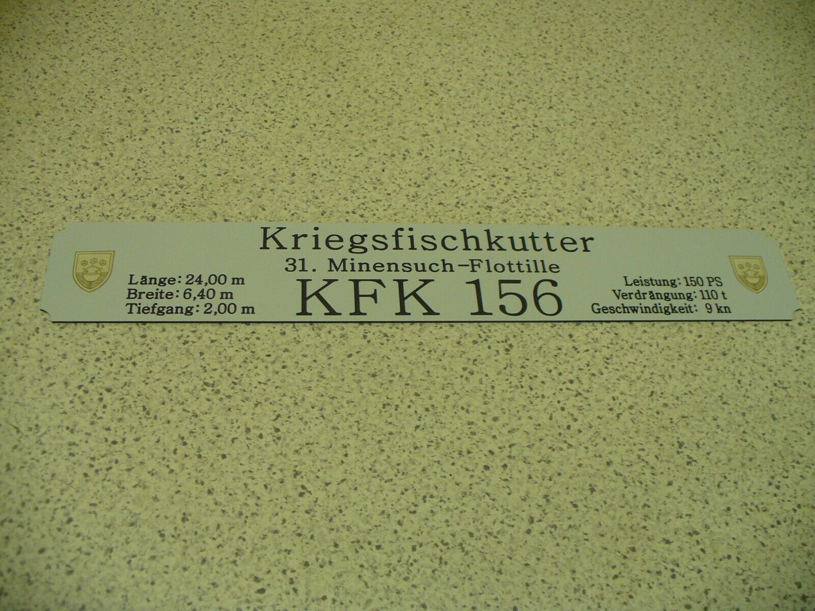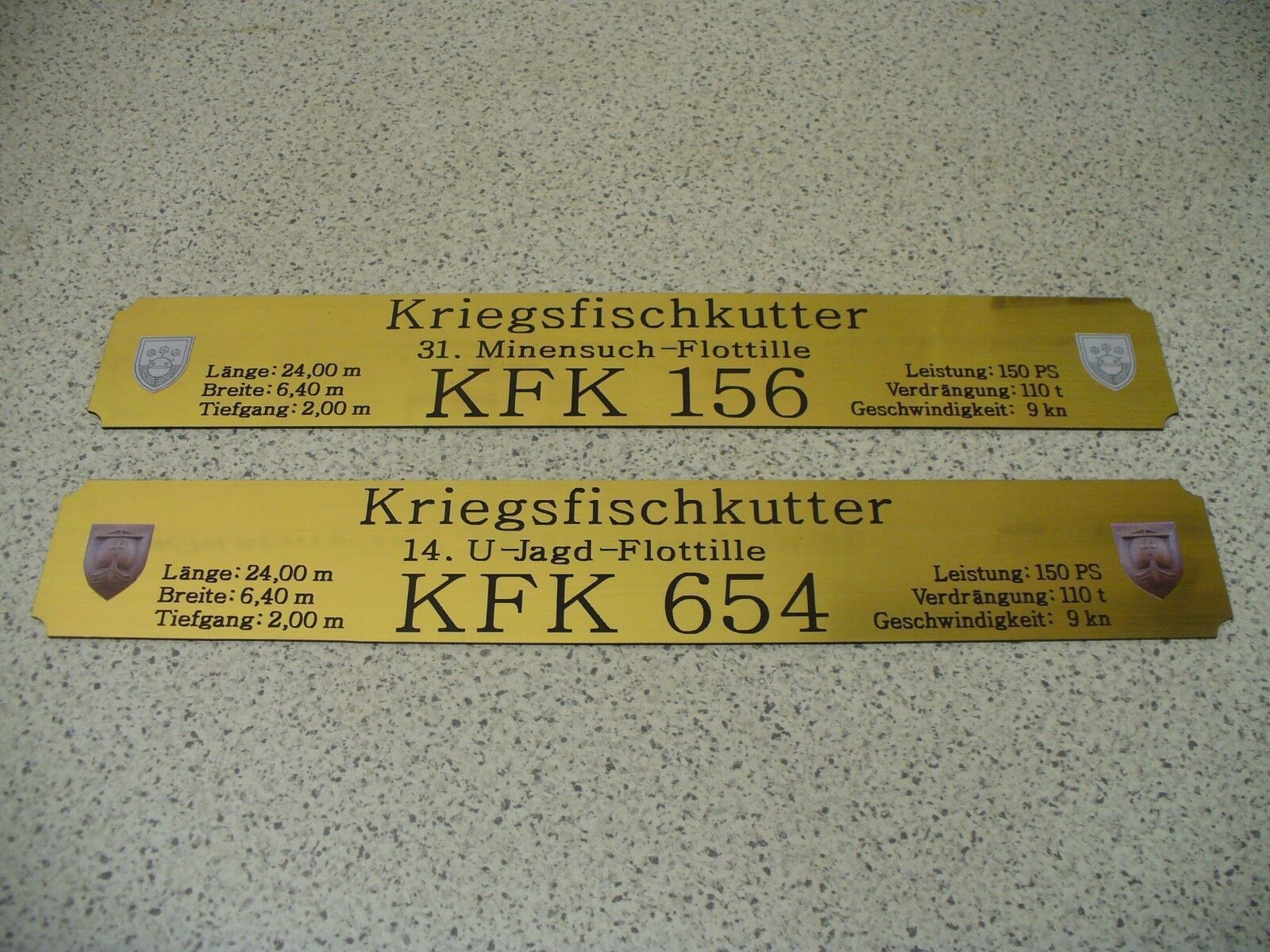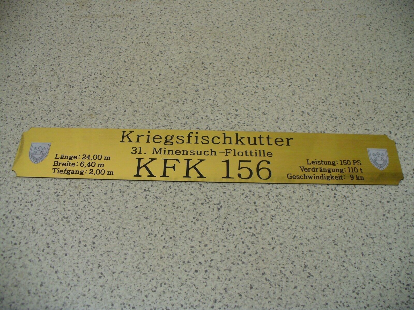Sie bieten hier auf: 1 exclusives Namensschild mit Daten - Kriegsfischkutter 156 - (oder 654 oder 178 oder M 3134) Bitte geben Sie an, welche Variante Sie möchten - andere Nummern gerne auf Anfrage mit farbigen Logos und verschiedenen Daten (siehe Bild) goldfarbig mit schwarzem Schriftzug (auch in w