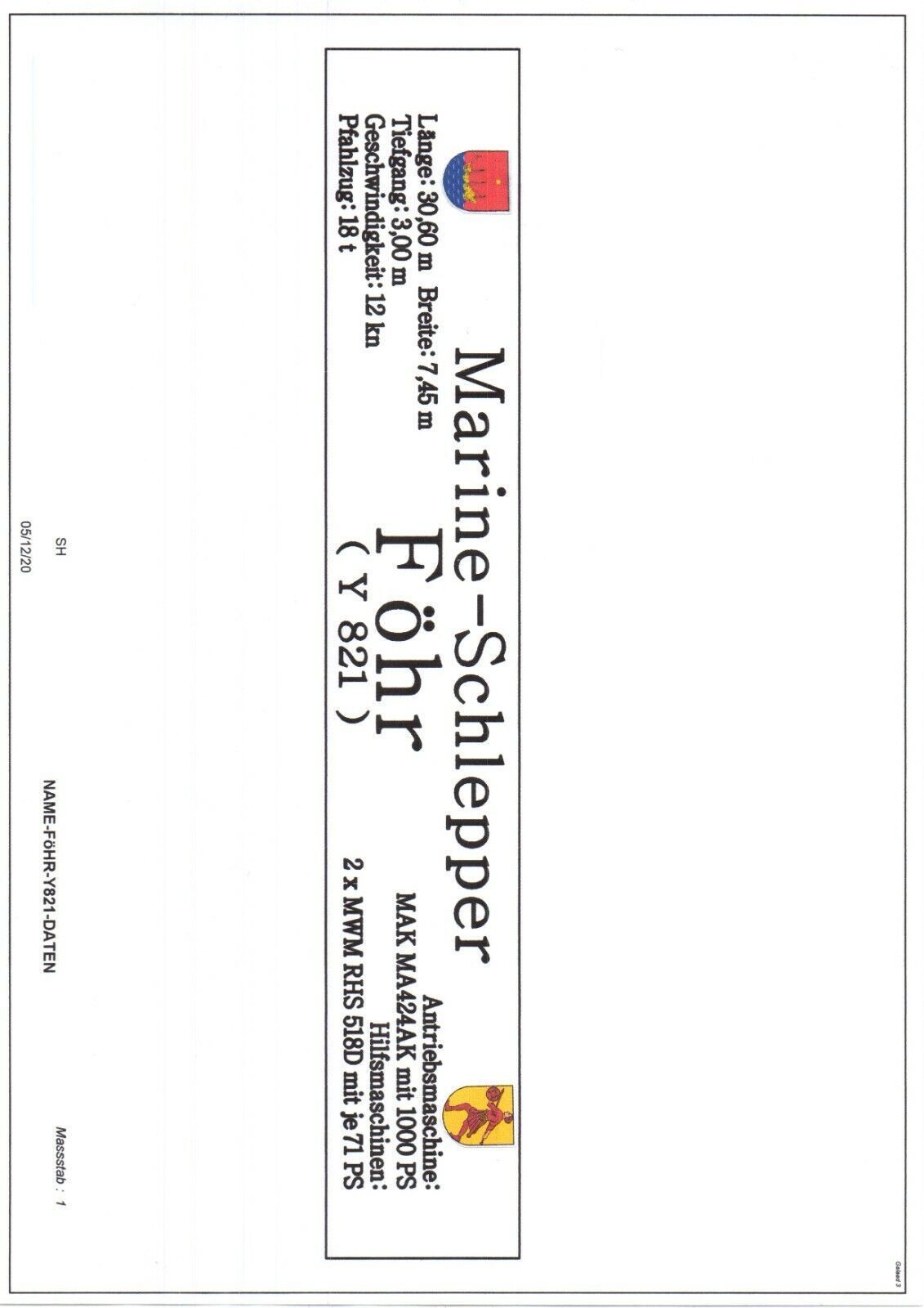 Namensschild für Modellständer mit Daten - Marine-Schlepper Föhr Y821