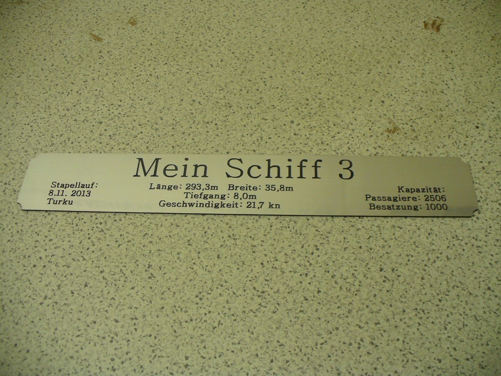 Namensschild für Modellständer mit Daten - Mein Schiff 2 (oder Mein Schiff 3)