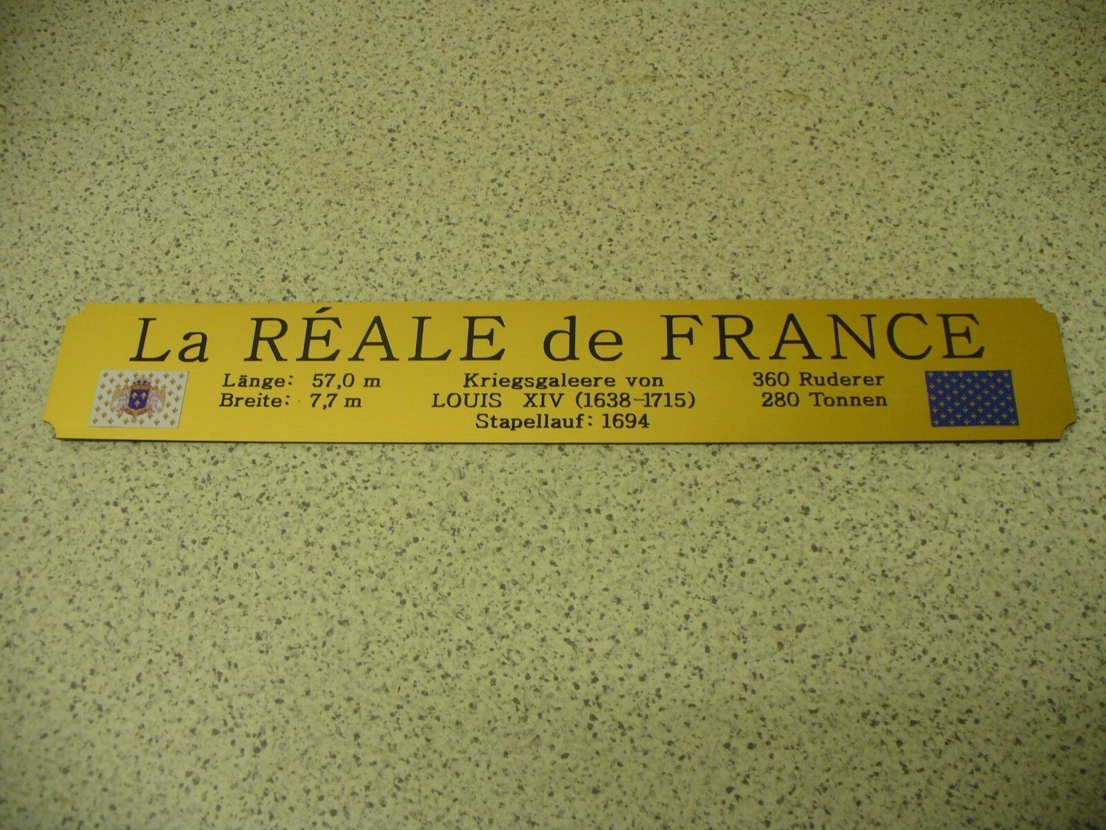 Namensschild für Modellständer mit Daten - Reale de France
