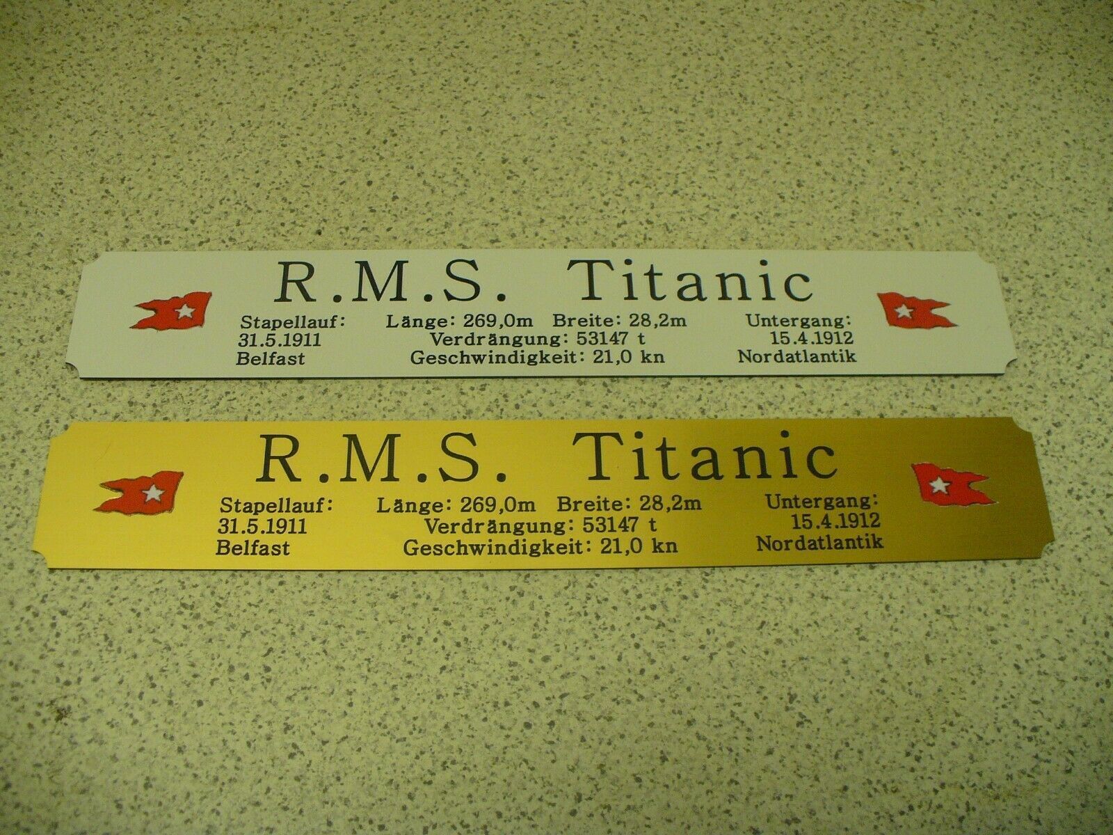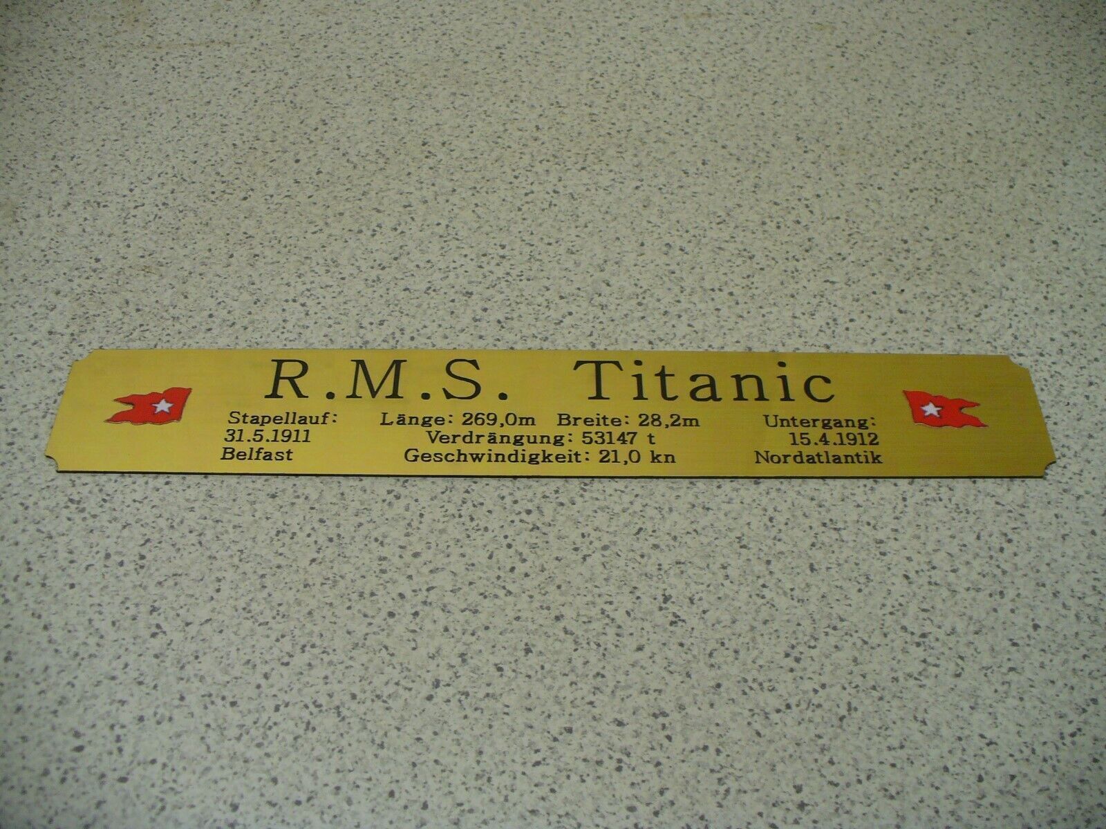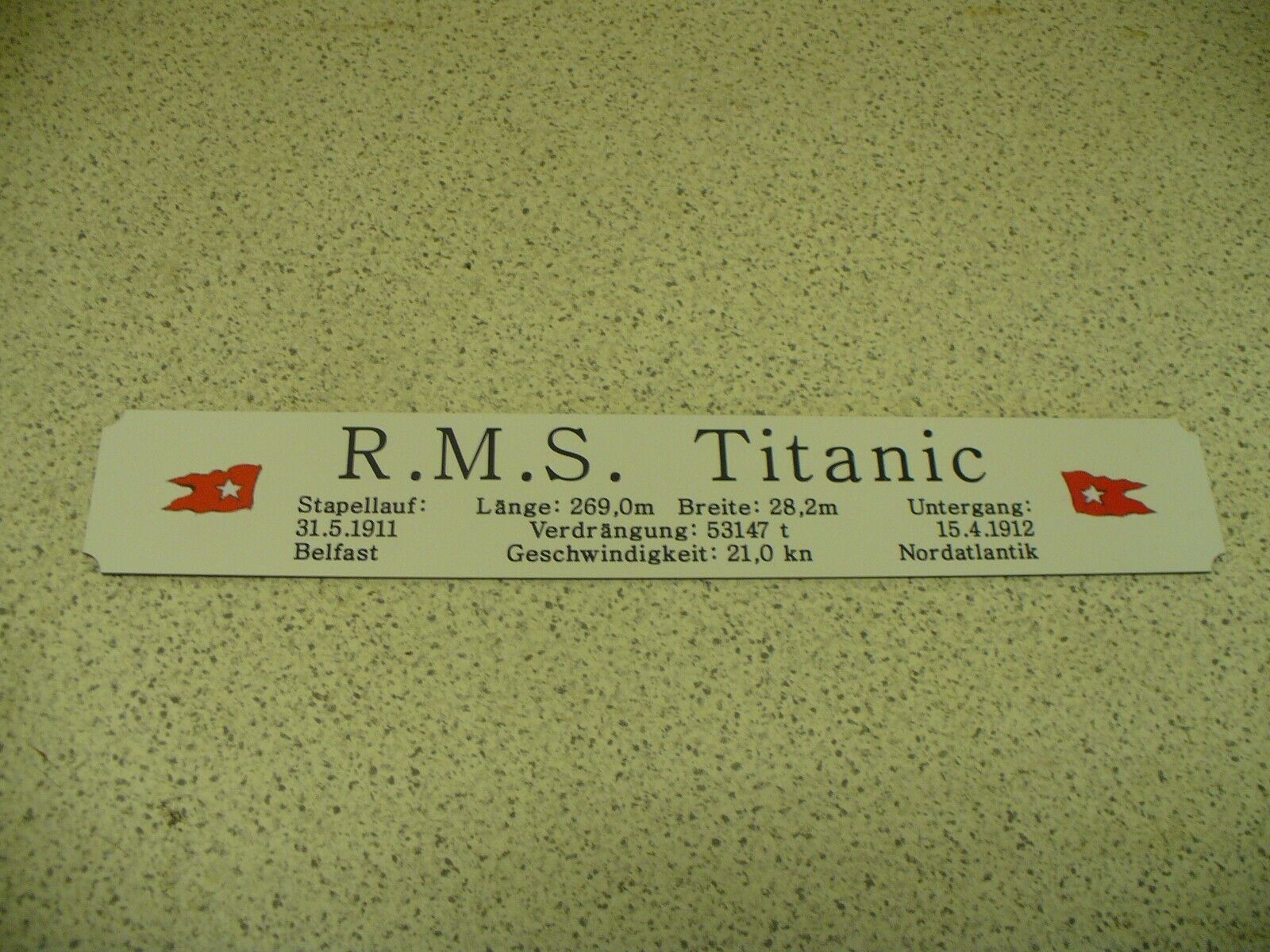 Namensschild für Modellständer mit Daten - RMS Titanic