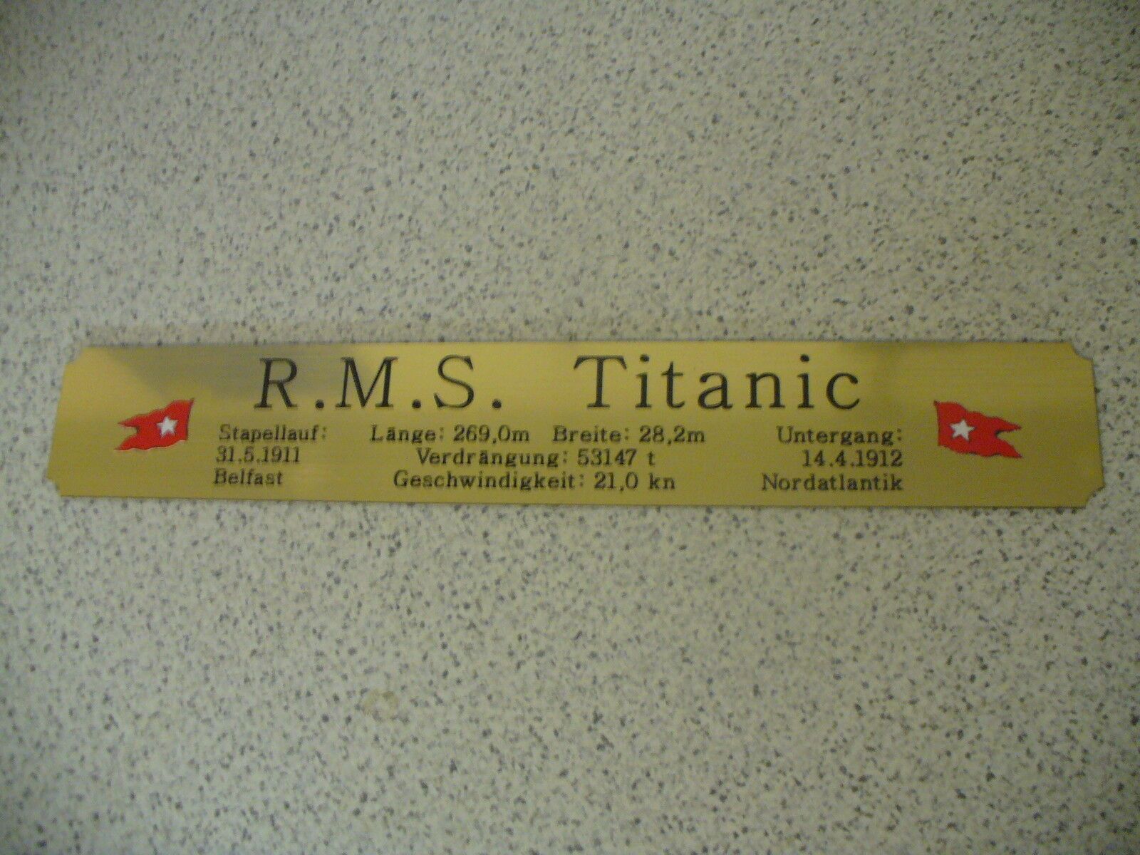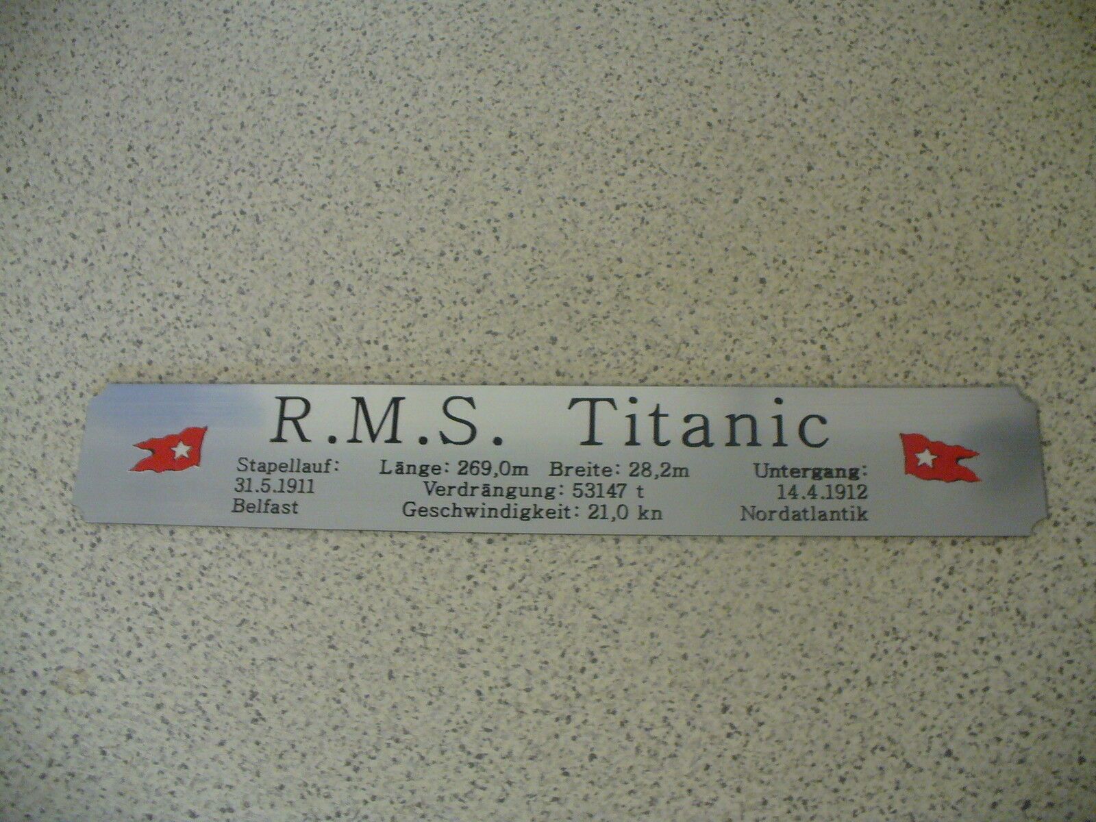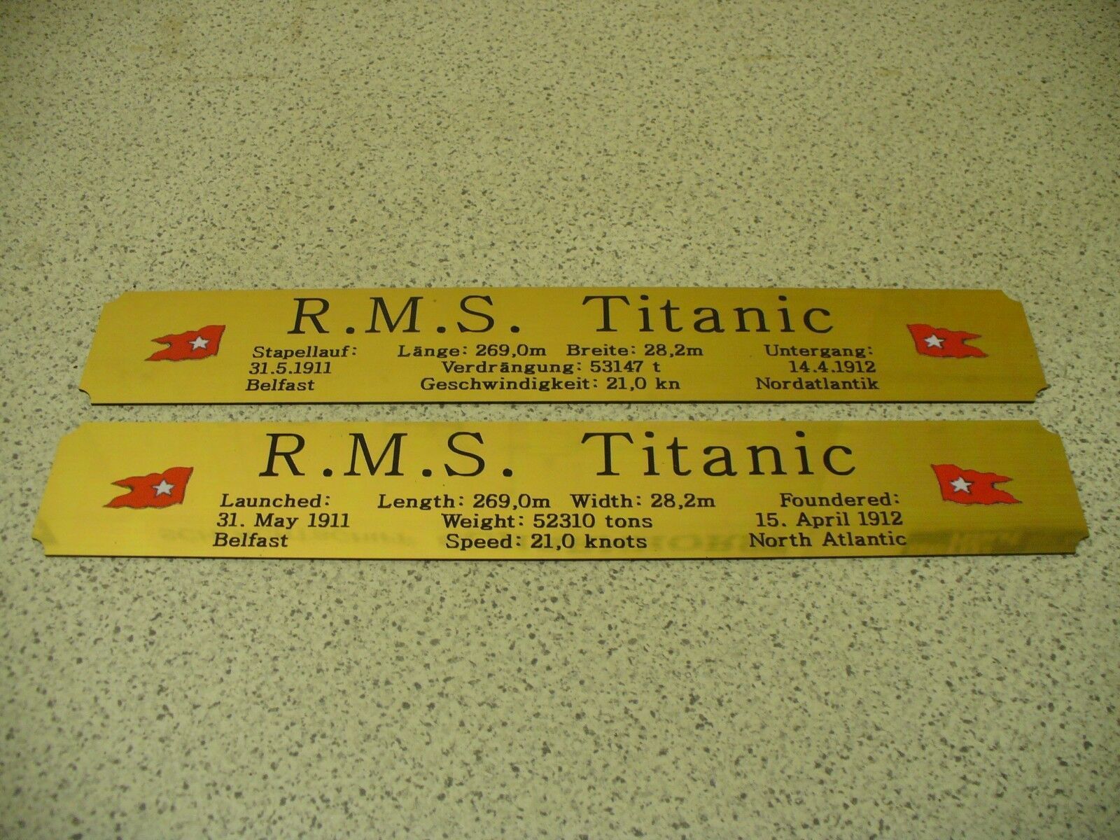 Namensschild für Modellständer mit Daten - RMS Titanic