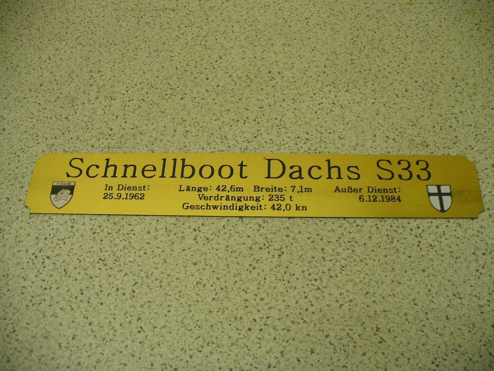 Namensschild für Modellständer mit Daten - Schnellboot Dachs S33