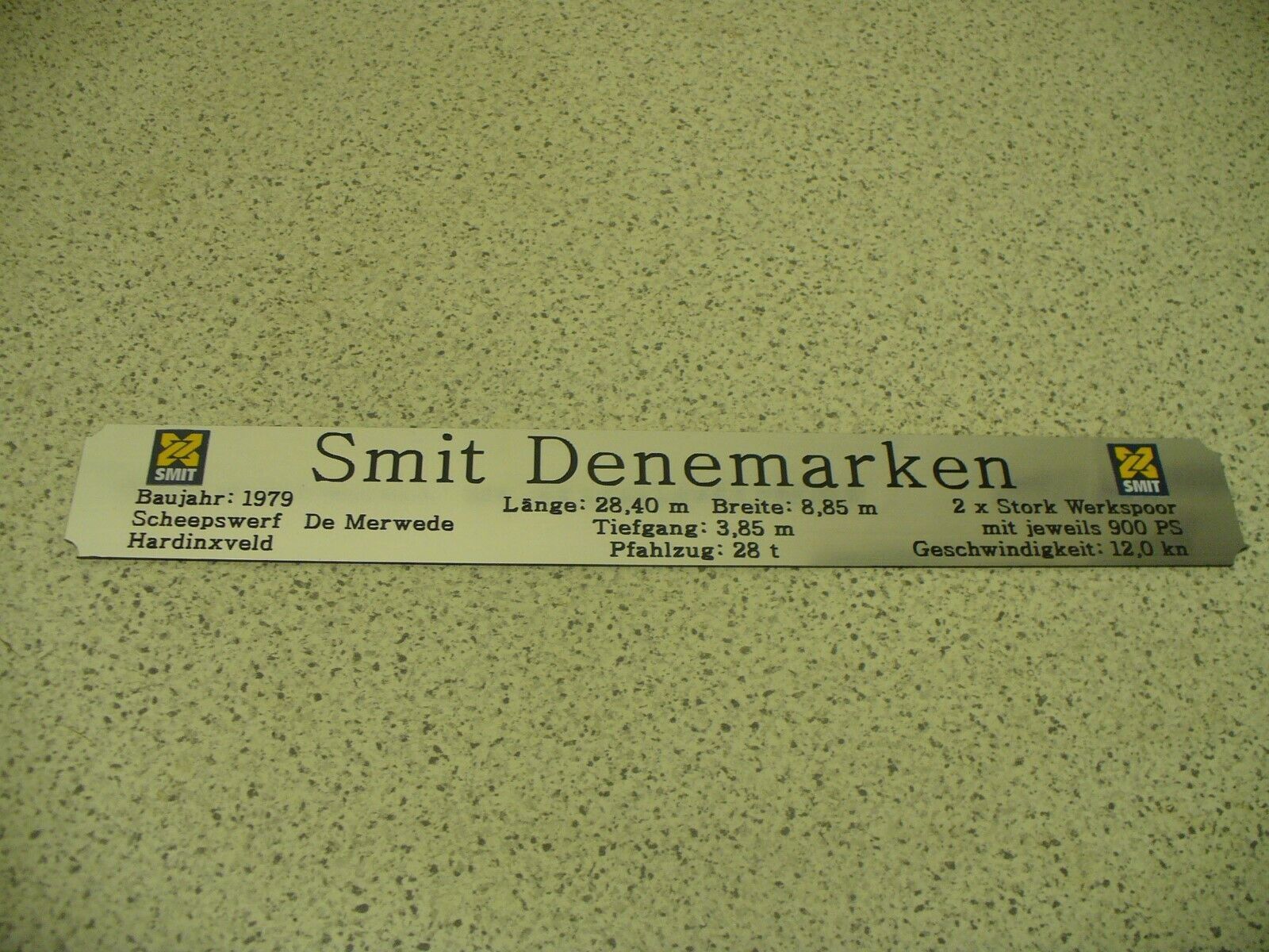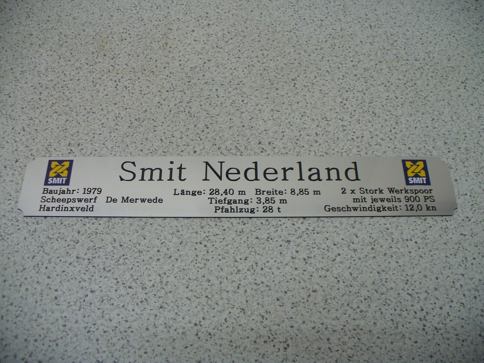 Sie bieten hier auf: 1 exclusives Namensschild mit Daten - Smit Nederland - mit farbigen Logos und verschiedenen Daten (siehe Bild) > gerne auch andere Schiffe der SMIT-Reederei (siehe Fotos) - dann bitte angeben < goldfarbig mit schwarzem Schriftzug (auch in weiss - oder silberfarbig möglich